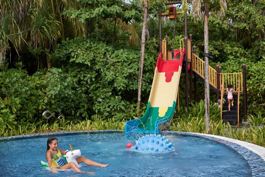 - (39) Ocean Pool Villa (Общая площадь 165 кв.м. Площадь виллы 91 кв.м) – Водные виллы с собственным бассейном, расположенные в лагуне над водой. На вилле: спальня с зоной отдыха и кроватью king (в полу есть небольшая стеклянная панель для наблюдения за океаном), ванная комната с ванной и душем, с просторной террасы с зонами отдыха и бассейном можно спуститься в лагуну и любоваться прекрасным видом на бескрайний океан.