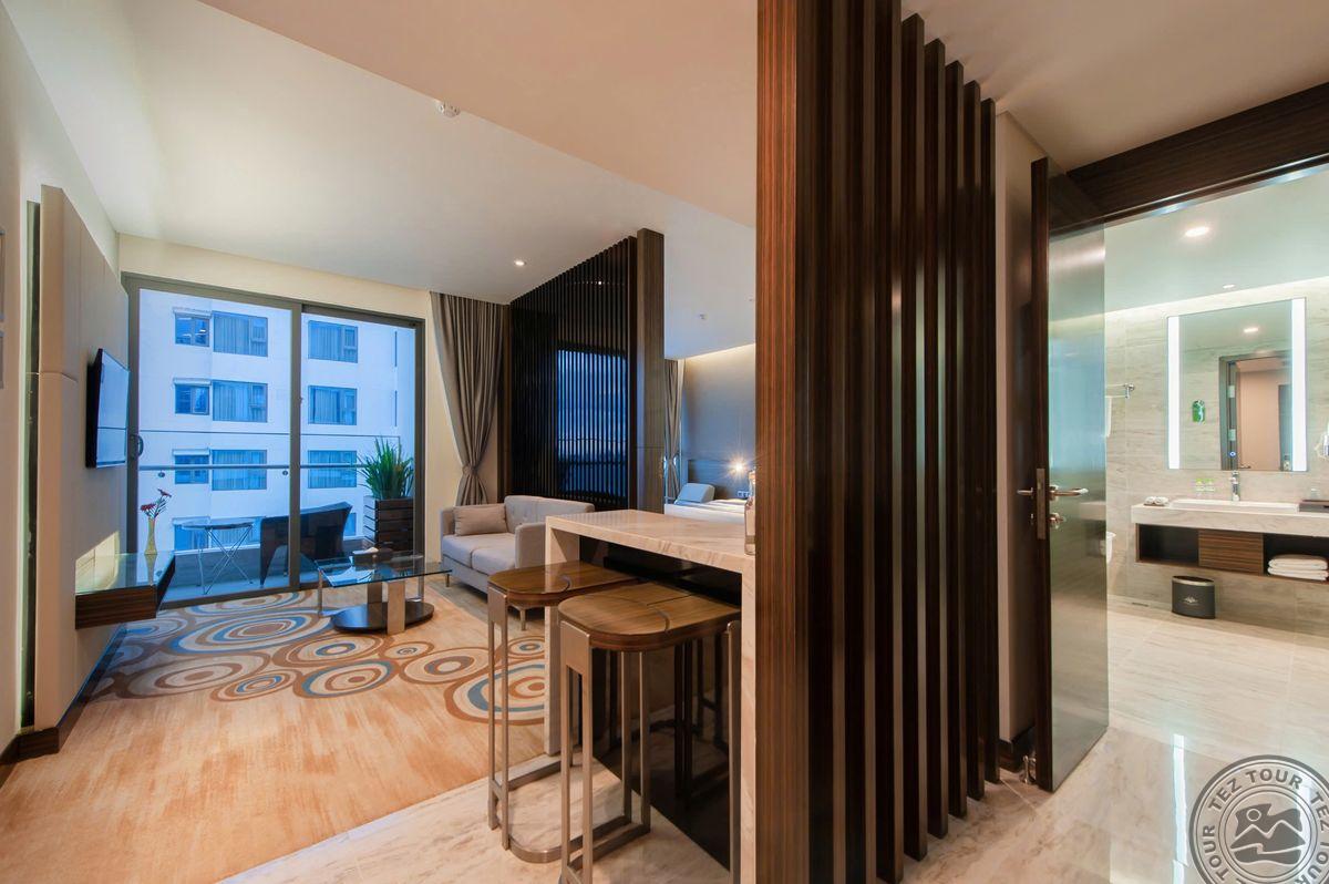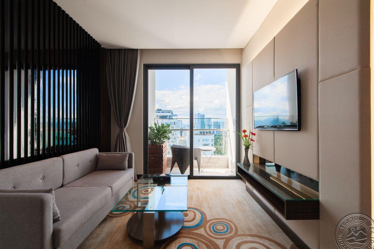 в 1,5 км от центра г. Нячанг, на центральной улице Чан Фу, в 32 км от аэропорта Cam Ranh, в 30 м от пляжа через дорогу.