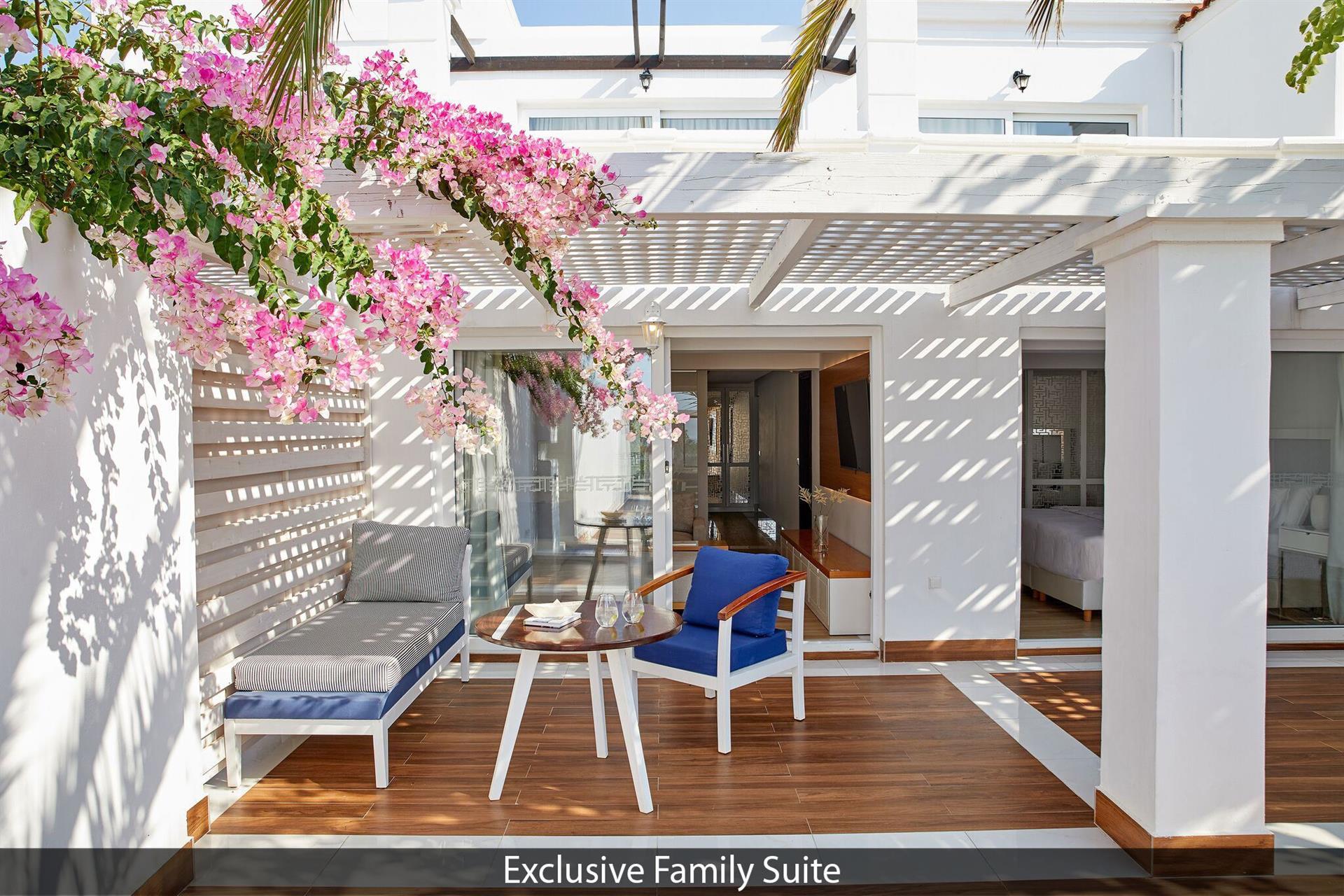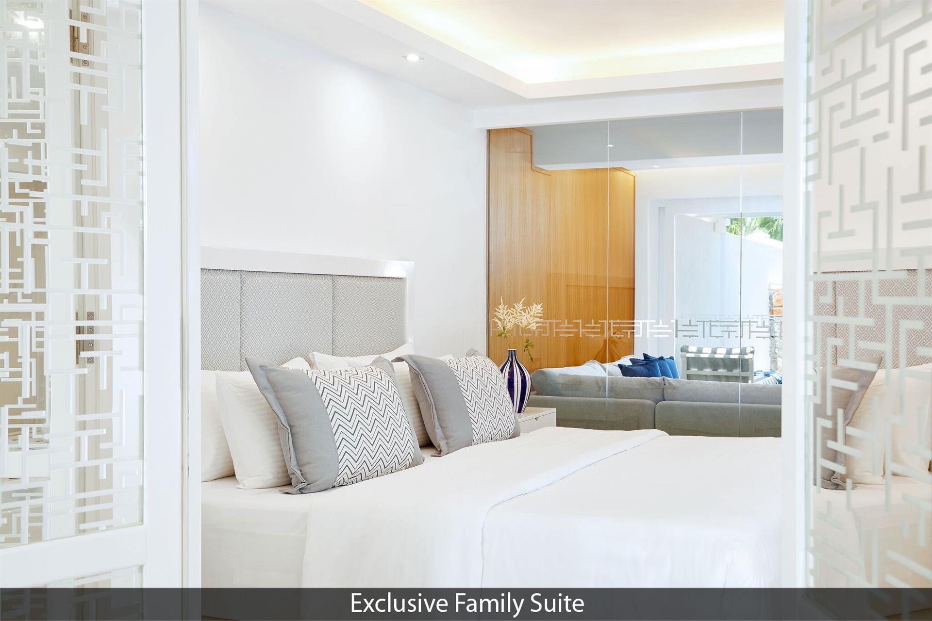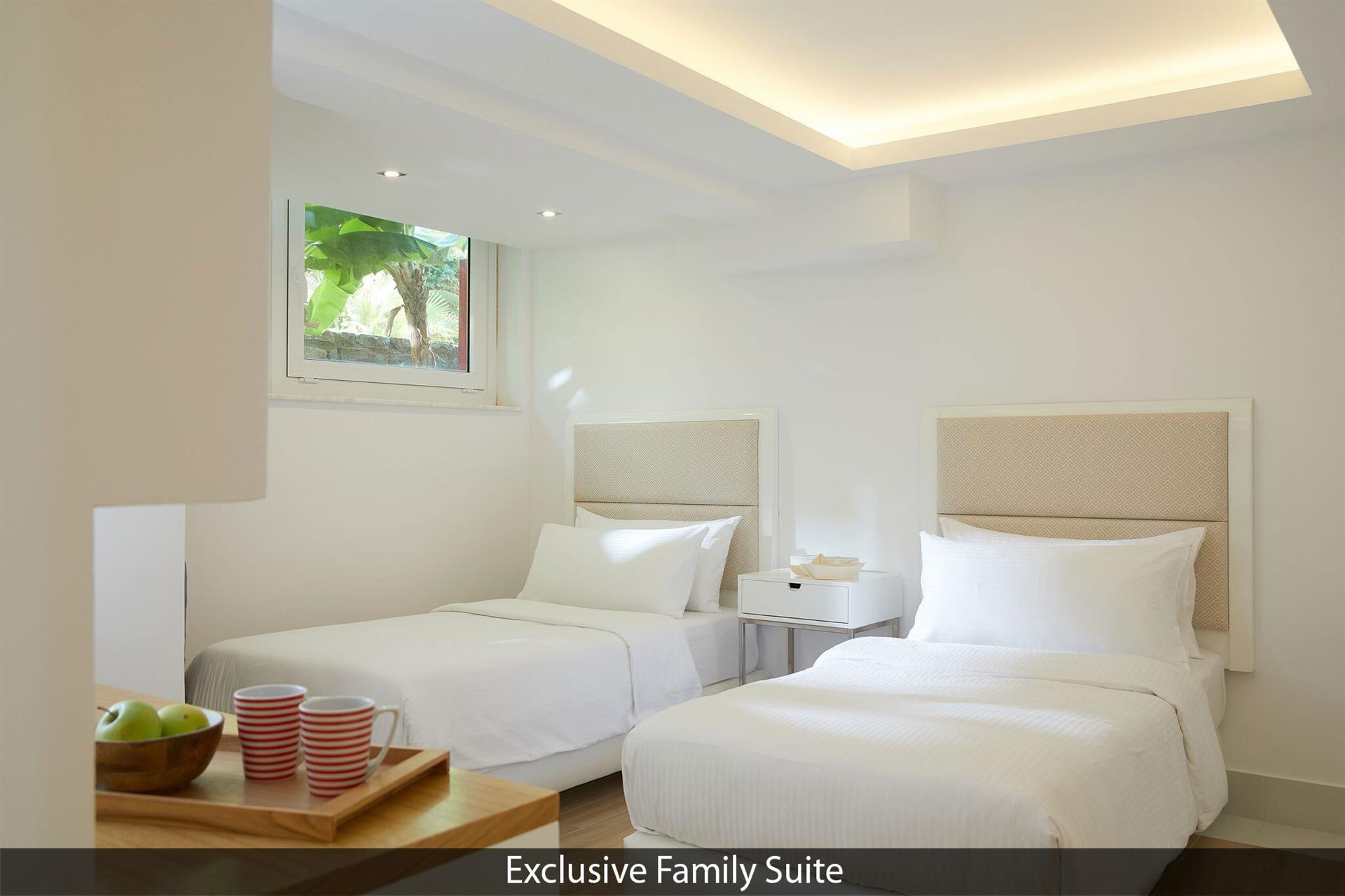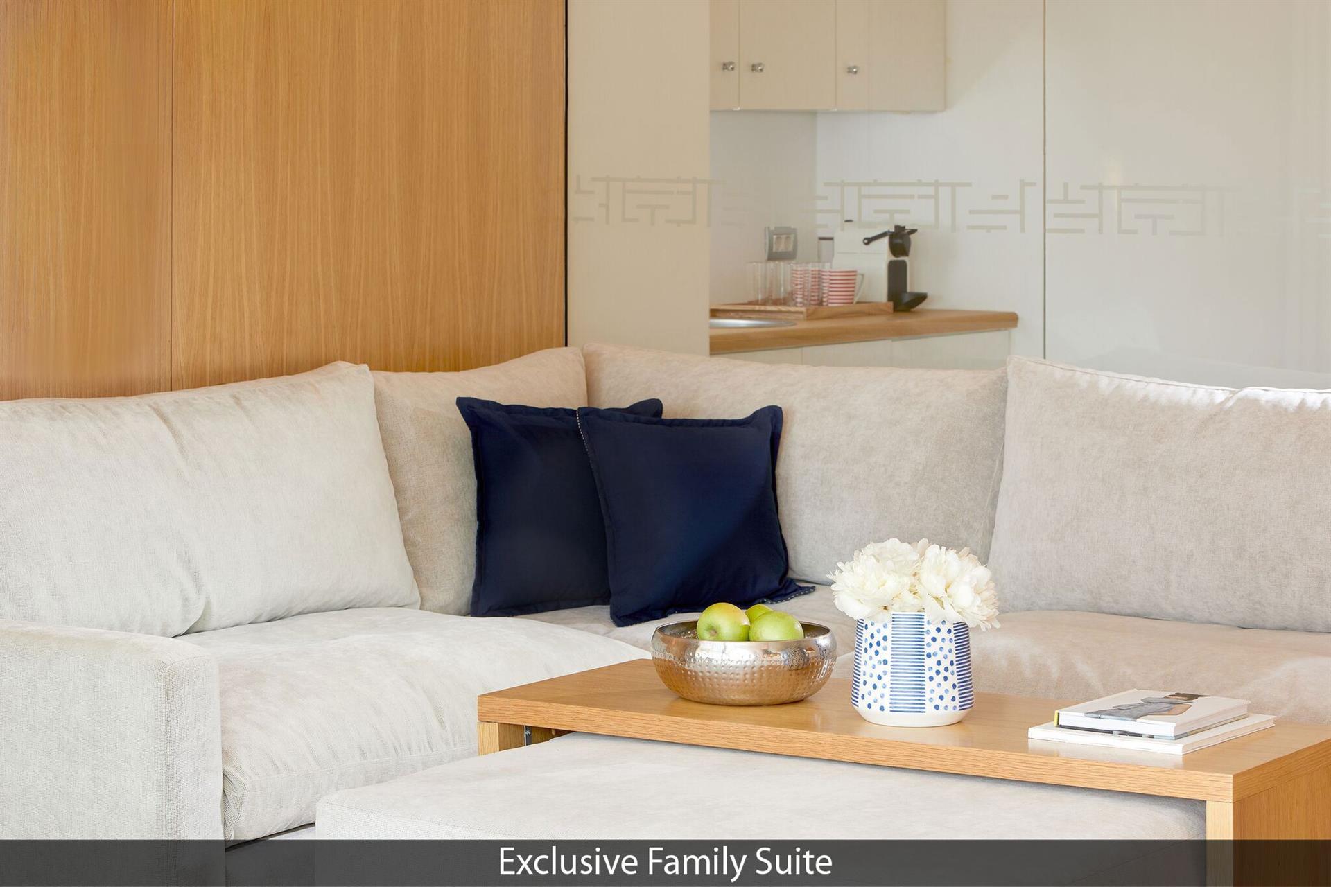 • Exclusive Family Suite (реновация в 2019 г., в двух шагах от пляжа, вид на сад или боковой вид на море, 2 или 3 спальни, 2 ванные комнаты, гостиная, кухонный уголок, балкон или терраса, макс. 4+2 чел., 76 м2),