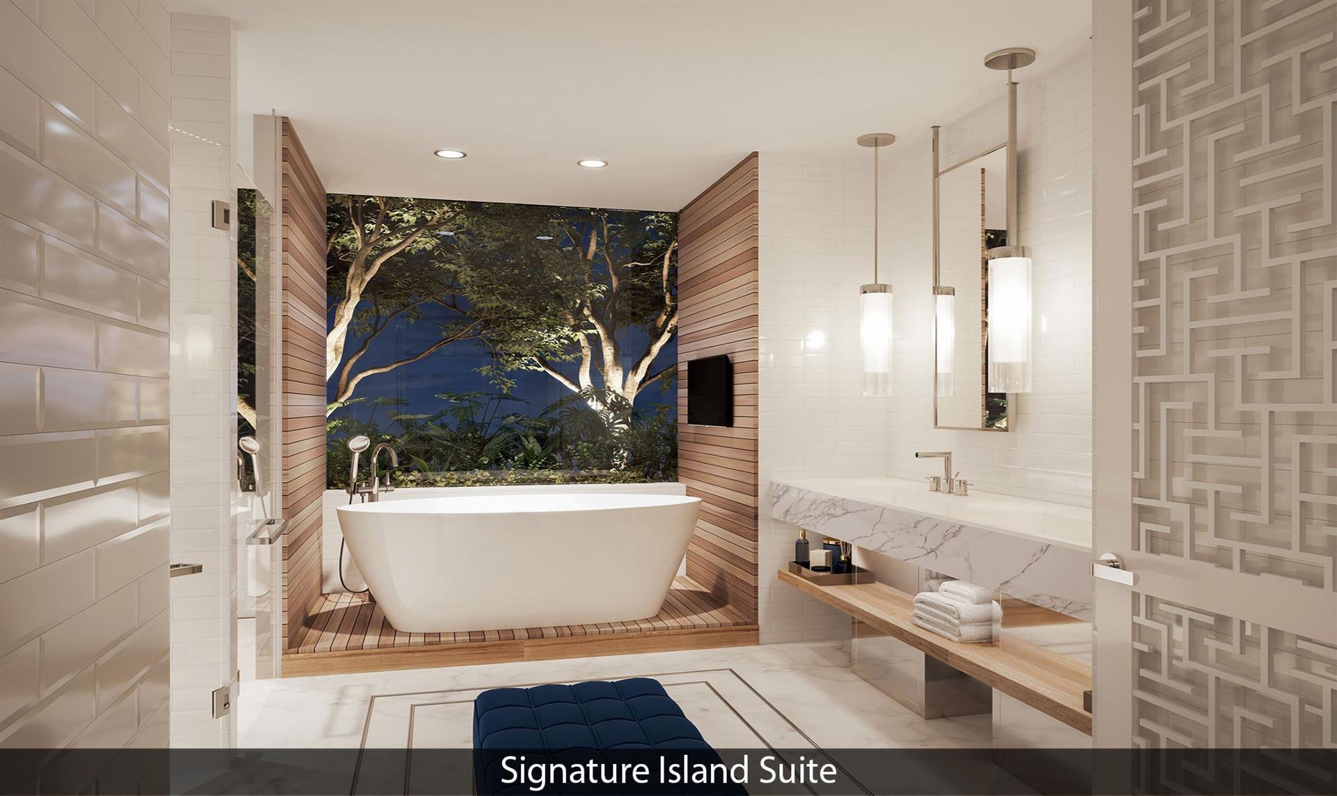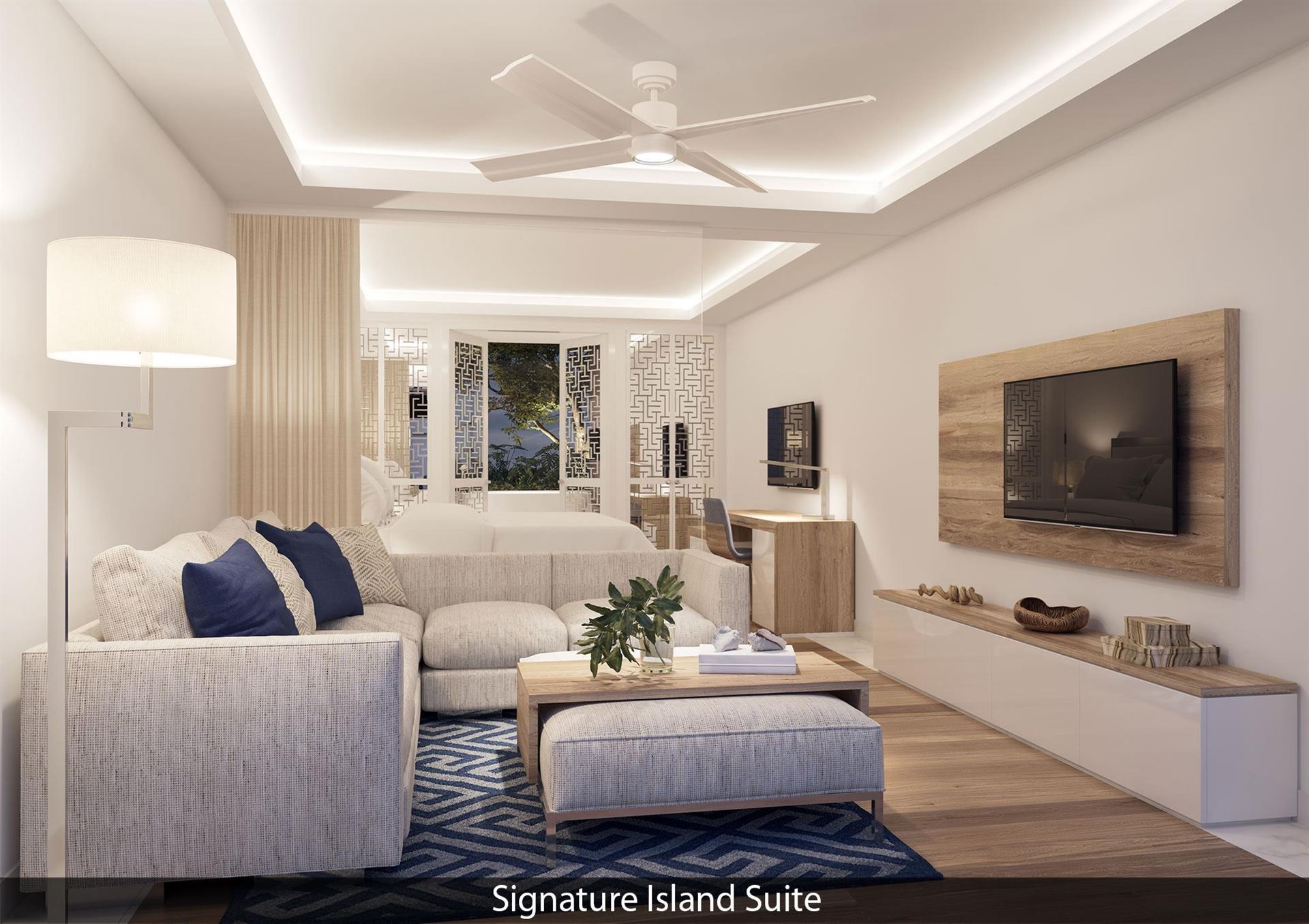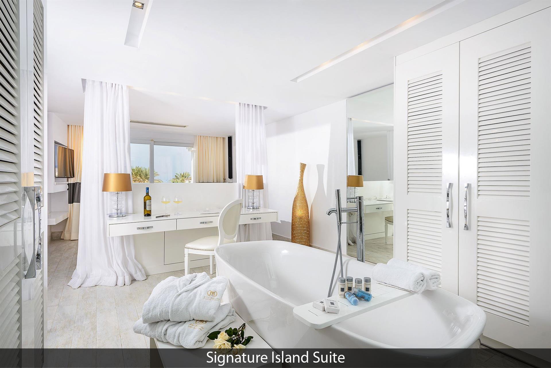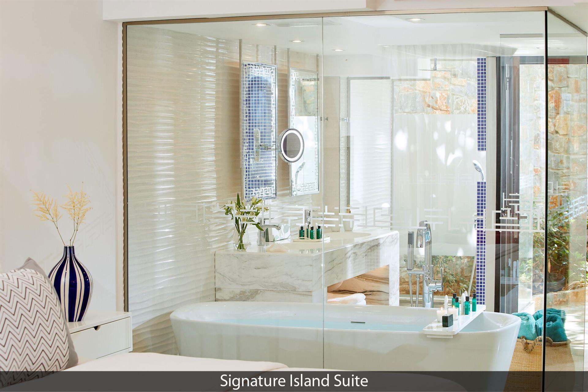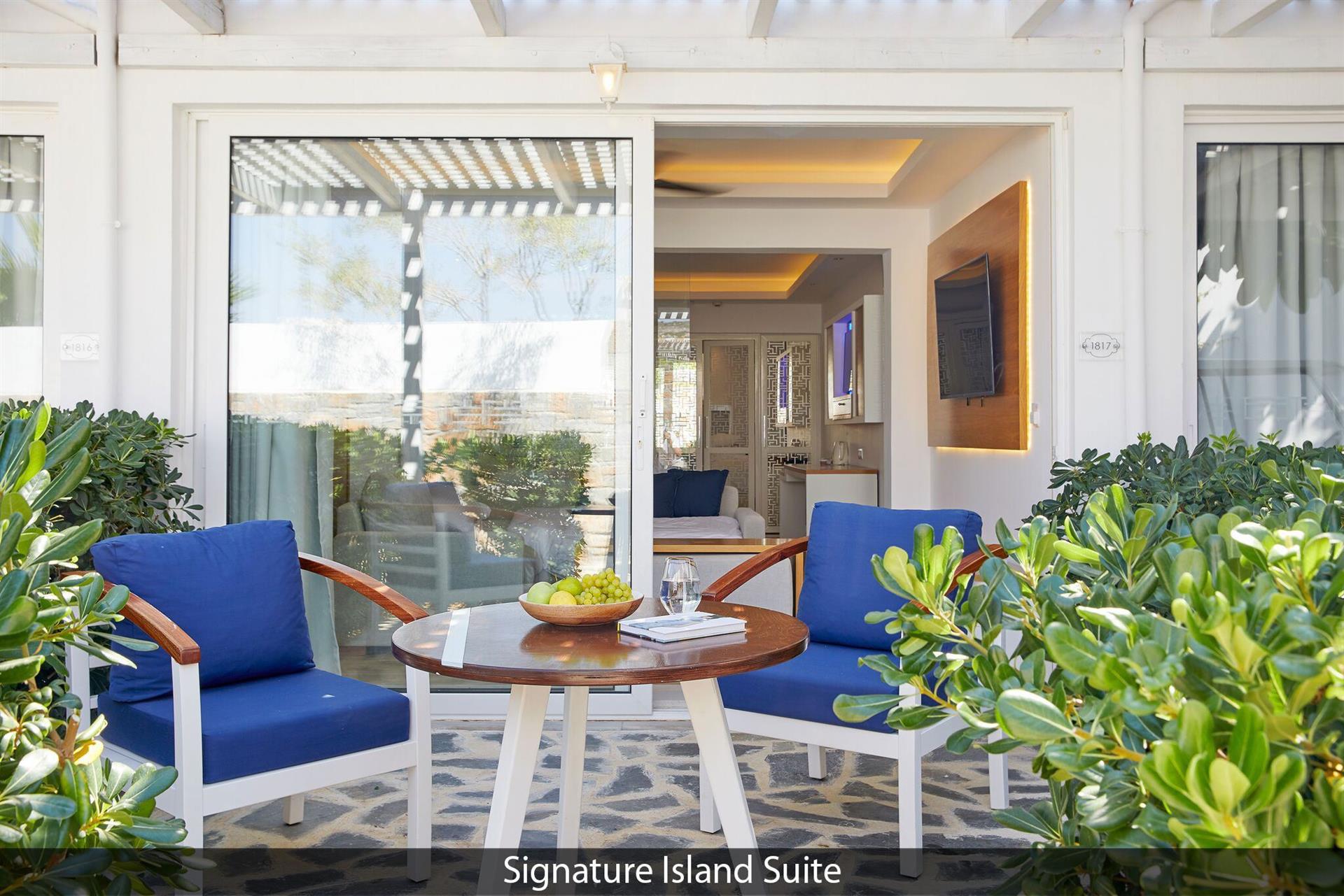• Signature Island Suite Outdoor Jacuzzi (Adults Only) (реновация в 2019, 52 м2, включает просторную веранду или балкон (20-45 кв.м.) с видом на море и джакузи на открытом воздухе, находится рядом с пляжем. Просторная главная спальня с двуспальной кроватью king-size, дополнительные диван-кровати, просторная гостиная)