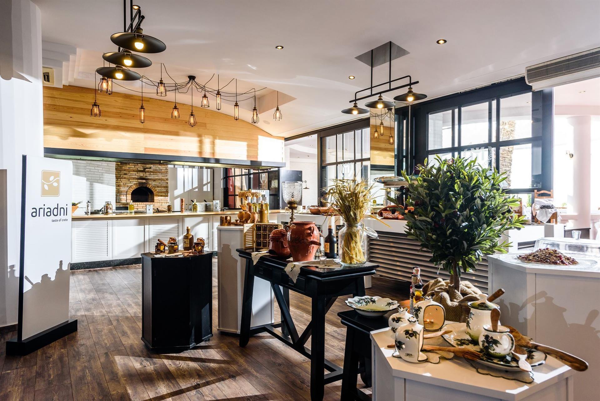 Ужины в тематических ресторанах “Ariadni” (19:00-22:00, критская кухня, весь сезон), "Italian Deli" (19:00-22:00, итальянская кухня, июнь-октябрь), "Payout Bat" (19:00-22:00, стейк-хасу, мексиканская кухня, середина мая-октябрь), “On the Rocks” (19:00-22:00, барбекю, средиземноморские салаты, кулинарные шоу, паэлья, рыба, июнь-октябрь). Необходима предварительная резервация, доступно для гостей, проживающих минимум 6 ночей (1 ужин); более 7 ночей - 3 ужина. Напитки во время ужина: минеральная вода, б/а напитки, соки, бочковое пиво, белое и красное вино. Вина a`la carte - за доп. плату, особые рестораны предлагают комплексное меню или меню a`la carte (кроме "On the Rocks").