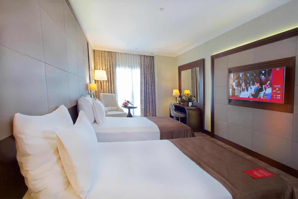 Описание номеров Ramada Hotel&suites By Wyndham Istanbul Merter 5*:Чтобы вы могли отдохнуть после долгого дня, в номере есть телевизор, мини-бар и халат. Оснащение зависит от выбранной категории номера.