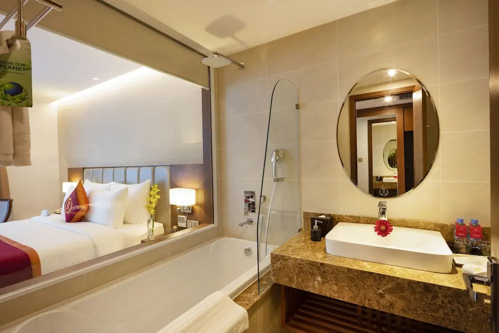 Из такого отеля на улицу можно вообще не выходить — отель «Regalia Gold Hotel» находится в Нячанге. Этот отель располагается 1 км от центра города. Рядом с отелем — Пляж Нячанг.