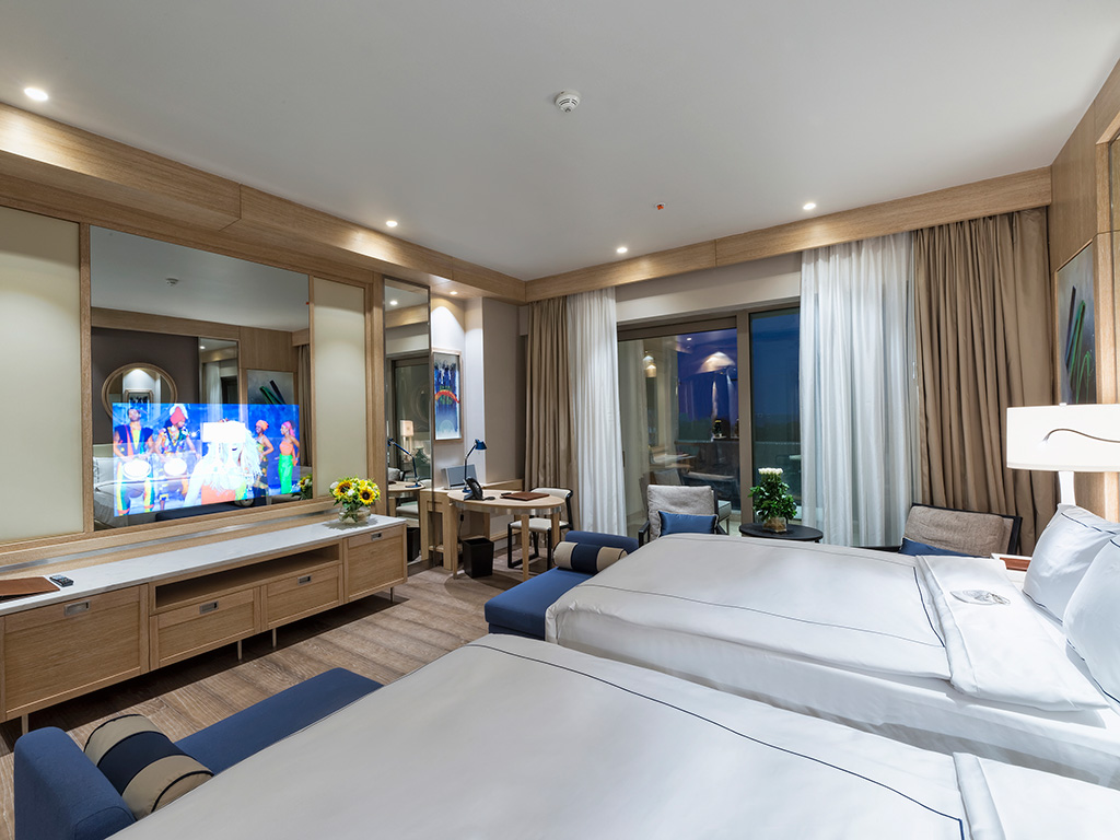 Бассейны и пляжОткрытые бассейны: cемейный бассейн, бассейн для взрослых, бассейны Golf Residence, бассейн с волнами.Крытый бассейн: бассейн с подогревом в СПА-центре.Пляж: песчаный, длинной 120 метров, пирс площадью 1800 кв.м, бар на пирсе, шезлонги, навесы для тени и полотенца.Пирс, бассейн с волнами, семейный бассейн и АкваМир открыты с 1 мая по 30 сентября.