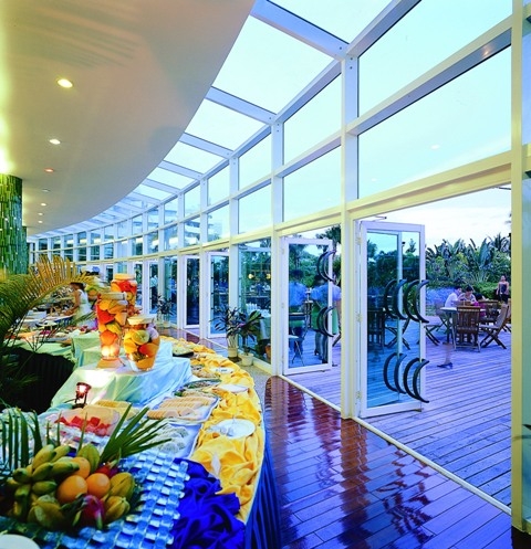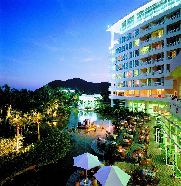 Рестораны и бары«Oceanic Chinese Restaurant» - ресторан хайнаньской кухни, морепродукты;«European Steak House» - ресторан интернациональной кухни;«Green Garden» - ресторан европейской кухни на открытом воздухе, находится у бассейна, завтрак «шведский стол», обед и ужин по меню;«Lake Side BBQ Dinner Buffet» - предлагает блюда южно-китайской кухни, барбекю, по вечерам играет живая музыка;«Chinese Restaurant VIP Room» - китайская кухня;«Poolside Bar» - бар у бассейна;«Bakery» - бар находится на 1 этаже, предлагает прохладительные напитки, мороженое, пирожные;«Lobby Lounge» - бар в лобби отеля.