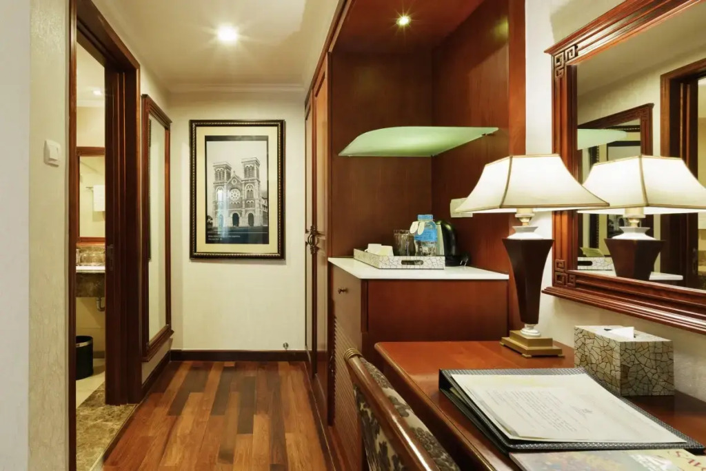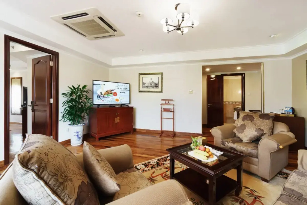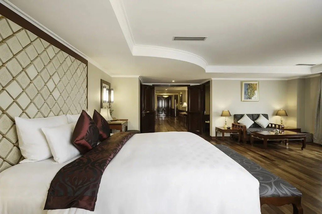 В отеле по утрам подается бесплатный завтрак. Для гостей здесь есть великолепный ресторан истинно въенамской кухни и отличных западных блюд. Также отель имеет два бара, считающиеся одними из лучших в Юго-Восточной Азии. Полюбоваться красивым видом города можно посетив бар и сад на крыше отеля.