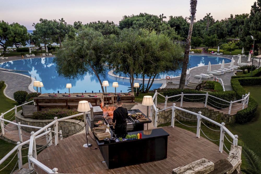 - РестораныMagico - шведский столChef Table (с 19:30 до 22:30) - a la carte, платно, открыт в зависимости от погодных условийFlavour (с 19:30 до 22:30) - a la carte, международнаяSparx (с 19:30 до 22:30) - a la carte, морепродукты, платно, открыт в зависимости от погодных условийLevante (с 19:30 до 22:30) - a la carte, турецкая кухняВнимание! Посещение Flavour и Levante - бесплатно, по предварительному бронированию один раз за все время проживания (при проживании от 7 ночей). Повторное посещение - платно. Посещение ресторанов Sparx и Chef Table - платное, по предварительному бронированию (время работы ресторанов может меняться в зависимости от погодных условий и на усмотрение администрации отеля)