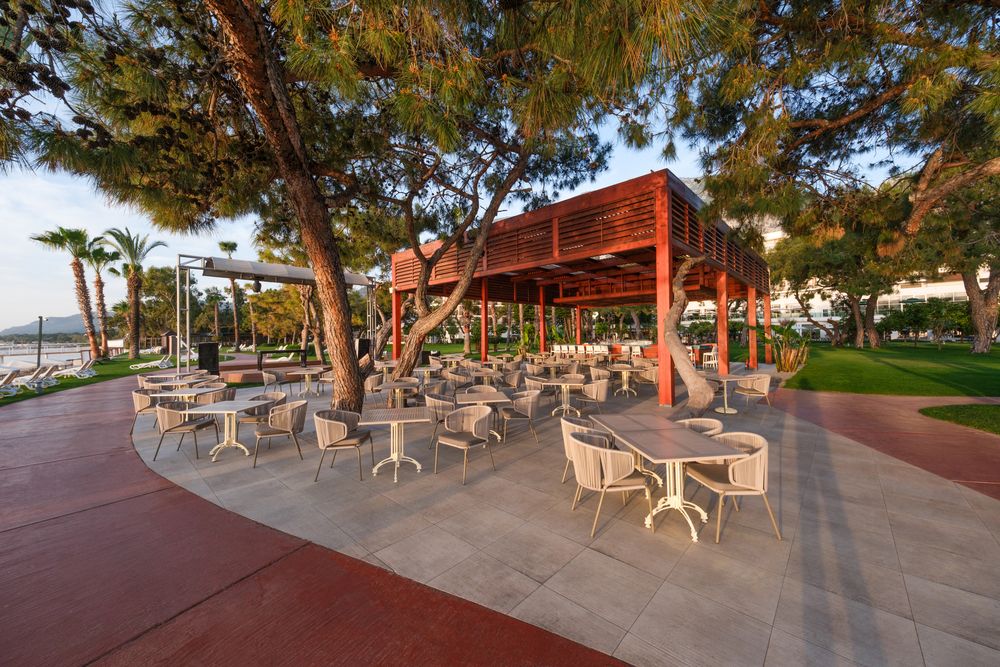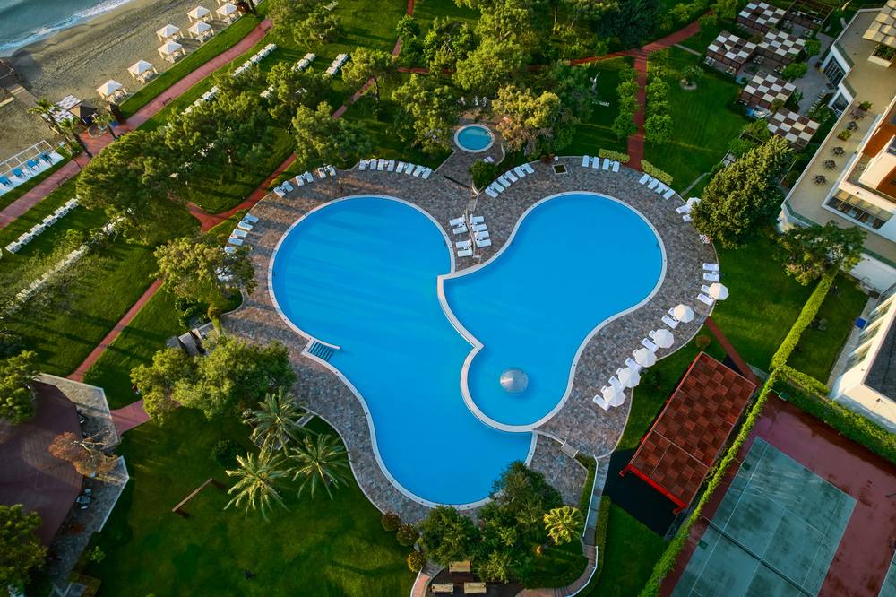 Высококлассный всемирно известный отель на берегу моря — один из крупнейших курортно-развлекательных комплексов Турции. На территории есть огромный аквапарк и бассейны, элитные бутики, развлекательный центр, настоящее детское королевство и один из крупнейших SPA-центров. Рекомендуется для любителей активного отдыха и для семей с детьми
