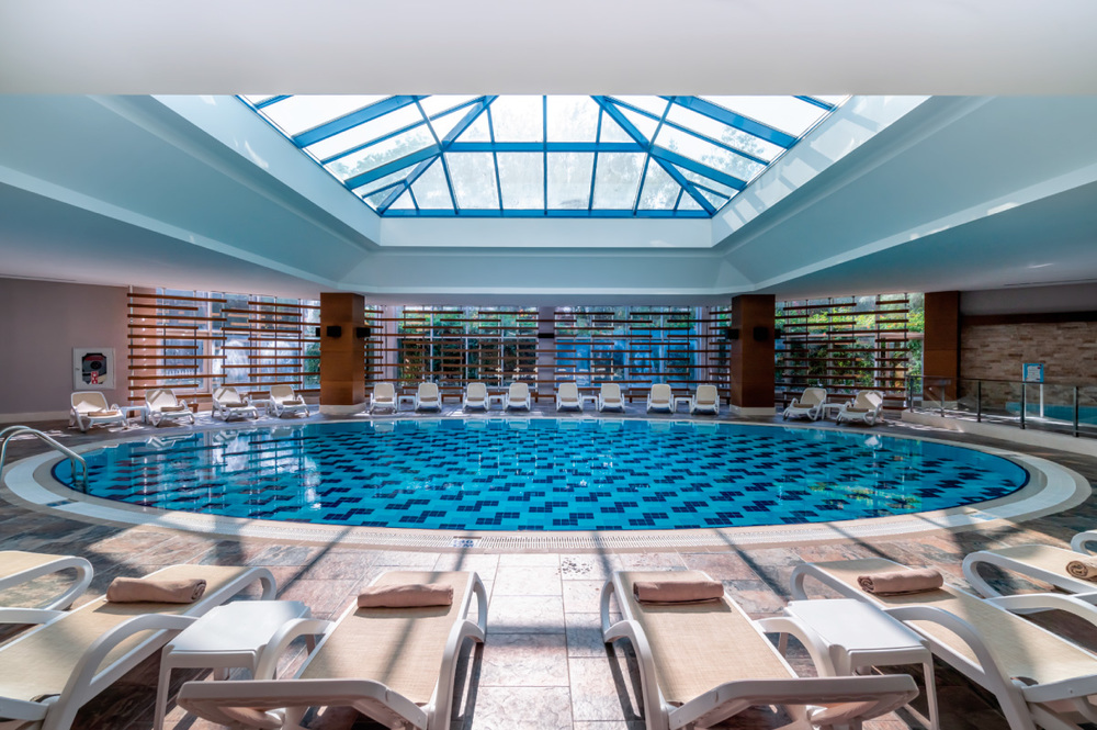 - Общее количество бассейновдва. Один открытый (работает с апреля по октябрь), один крытый (с подогревом зимой, работает с ноября по апрель)(время работы подогрева может меняться в зависимости от погодных условий и на усмотрение администрации отеля)Внимание! Бассейны будут в распоряжении гостей с 1 апреля (в зависимости от погодных условий). Услуги у бассена предлагают обслуживание в зависимости от сезона и погодных условий