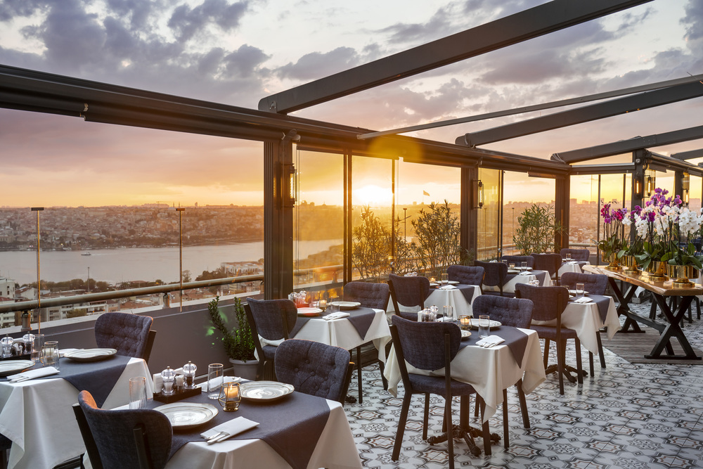 JUNIOR SUITEВид из номера: на район Пера/город/Золотой РогПлощадь номера: 40-60 кв.мКомментарий: спальня и гостиная