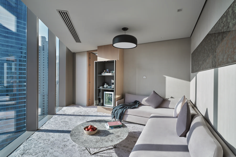 Premium One Bedroom Suite:• Газеты и журналы на английском и арабском языках (предоставляются по запросу);• Раннее заселение/поздний выезд из номера (по возможности и наличию номеров)• На момент заселения в номер фрукты и сладости предоставляются в качестве комплимента от отеля;• Услуги прачечной – 5 вещей на весь период проживания (применяется при бронировании минимум 3 ночей)• Капсулы кофе Illy для кофе машины предоставляются по запросу, неограниченное количество раз.
