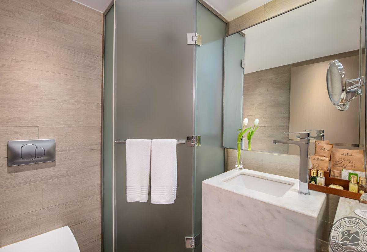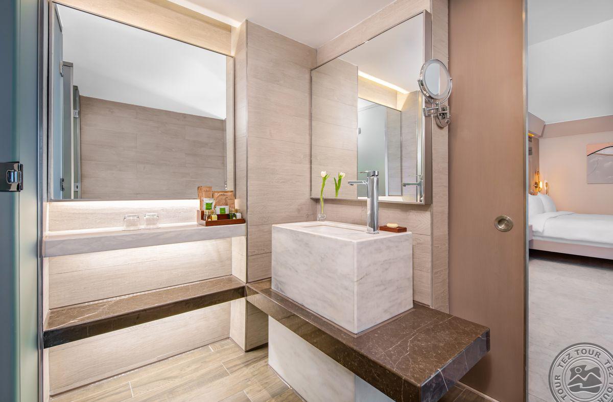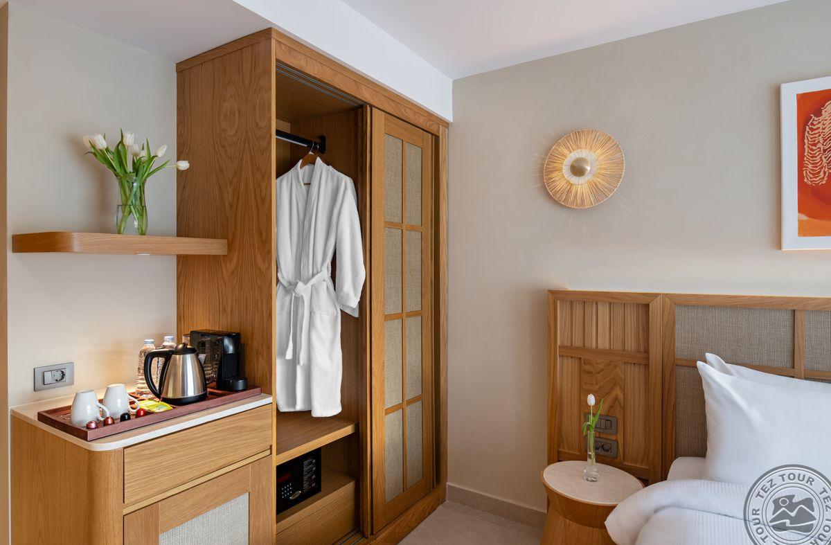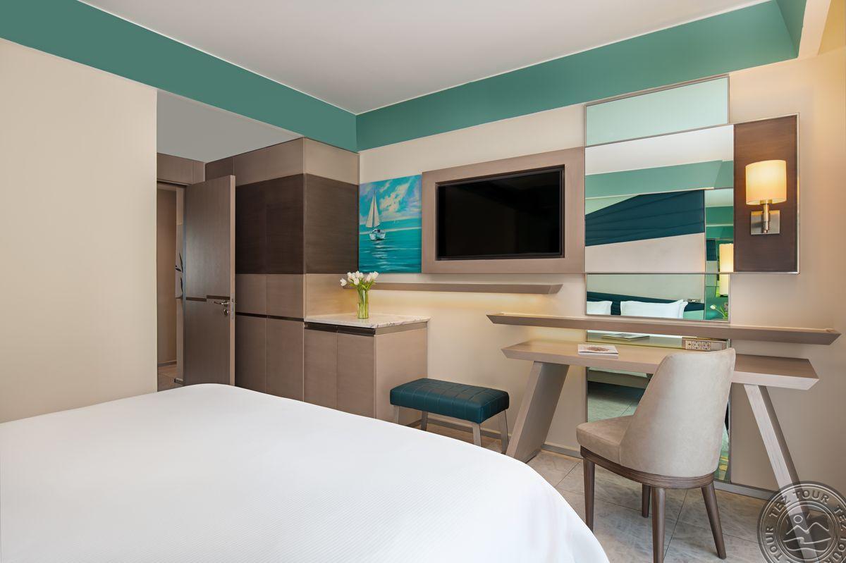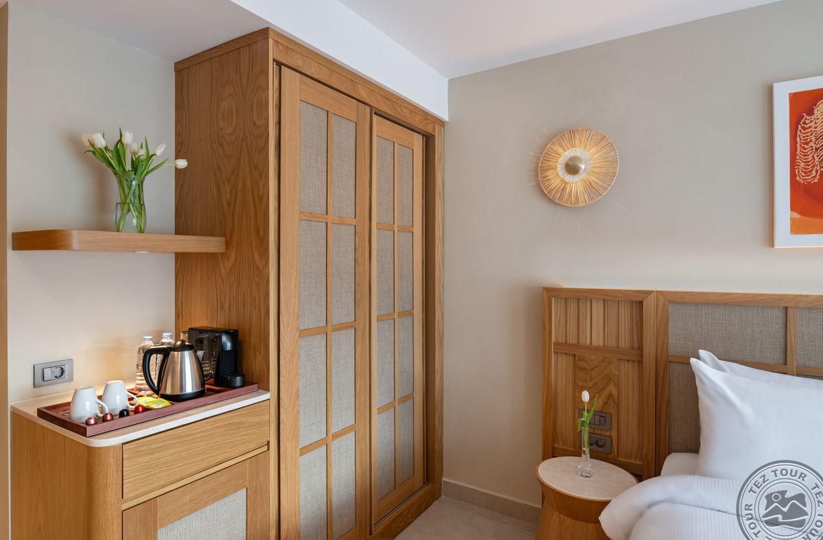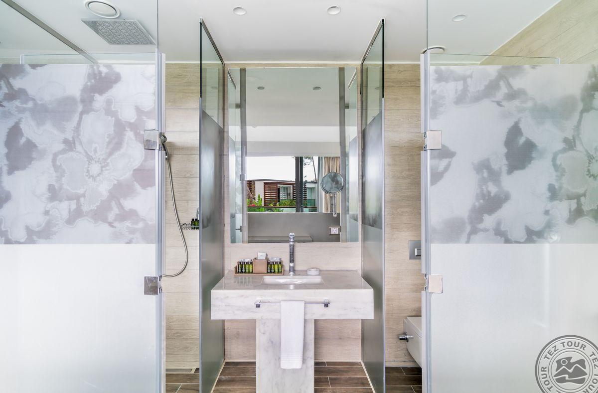 40 однокомнатных Pool Suite (спальня, мягкий уголок, макс. 2+1+инфант чел., 45 м2); из них 20 номеров Pool Suite Ground Floor с прямым выходом к бассейну и 20 номеров Pool Suite Up Floor с террасой спуск к бассейну по ступенькам *(доступ к бассейну осуществляется по лестнице).