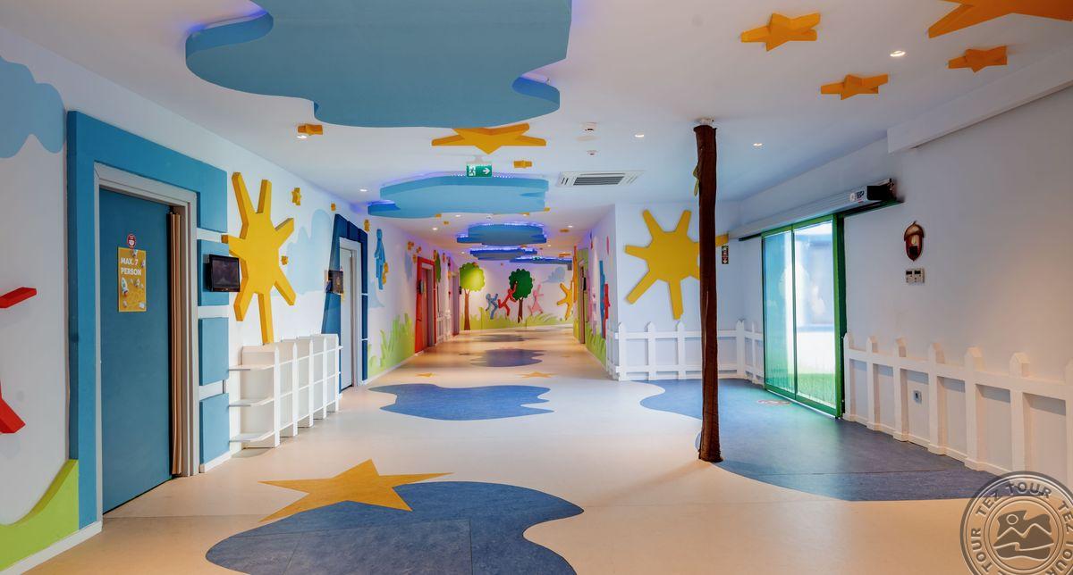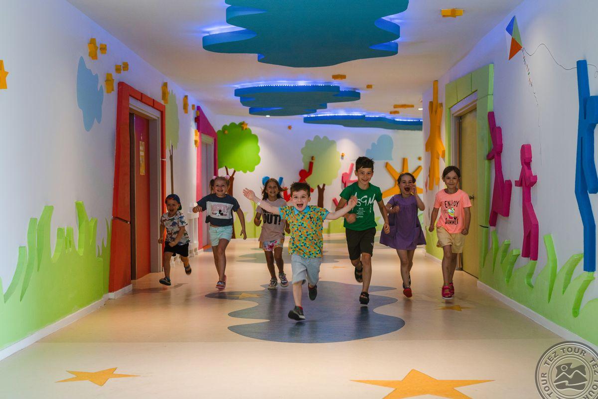 Детям:> детский ресторан (Rixy: с 12:00 – 16:00 – обед, с 16:00- 17:00 Печенье / фрукты) детский бассейн: есть услуги няни: платно детская площадка водные горки: 5 клуб для подростков (Smarties, 13-17 лет) детский клуб есть
