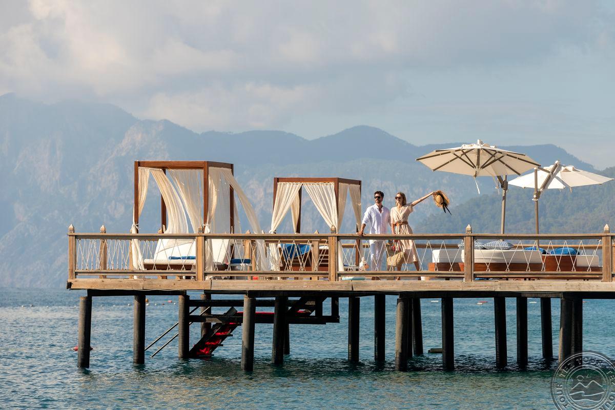 Пляж:> шатры на пляже платно ((павильоны на пляже бесплатно для гостей King Suite, Executıve Villa, Superior Villa при бронировании 5 ночей и более; для других категорий за дополнительную плату)) на пляже зонтики, шезлонги: бесплатно пирс на пляже полотенца: бесплатно бар на пляже: бесплатно собственный песчано-галечный