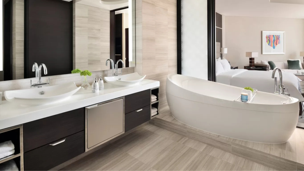 Номер уютно обставлен и оснащён необходимым, чтобы отдохнуть после долгого и насыщенного дня. Имеются душ, телевизор, мини-бар, халат и тапочки. Оснащение зависит от выбранной категории номера.