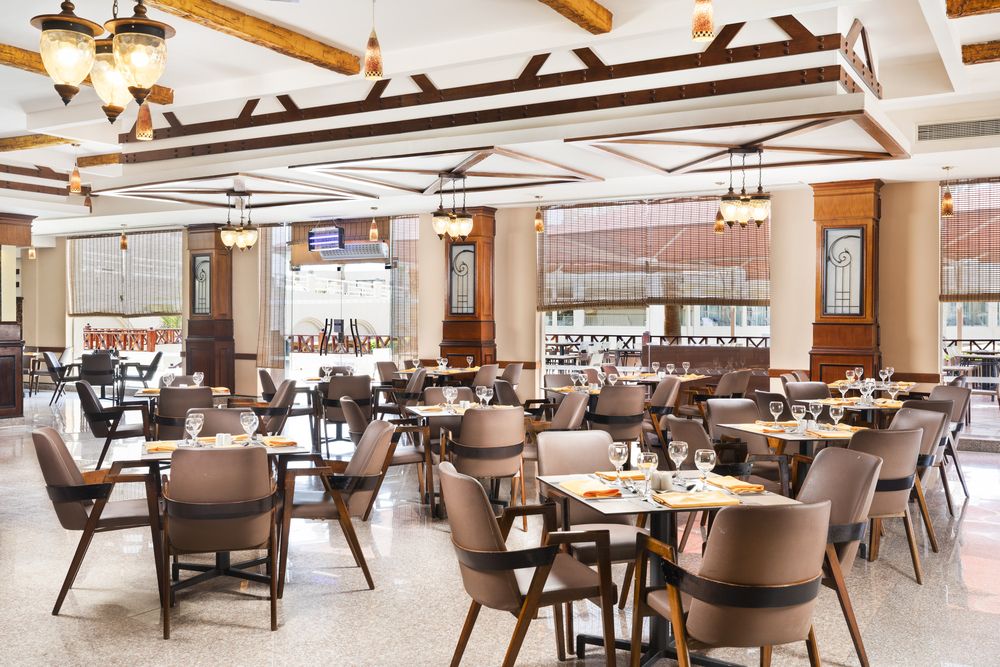 - РестораныMedetrenian - шведский стол, средиземноморскийTajine - шведский стол, восточная кухняSoprano - шведский стол, итальянская кухняClub MC - шведский стол, на пляжеCulina - шведский стол, рыбныйL`Asiatique - шведский стол, азиатская кухняZum Kaiser - шведский стол, немецкая кухняWhite Elephant - a la carteВнимание! Посещение ресторана a'la carte - платно, по предварительной резервации