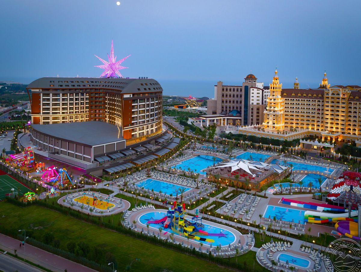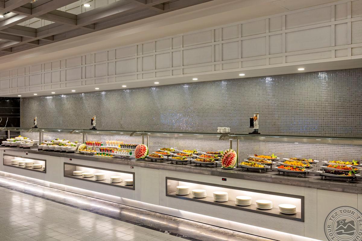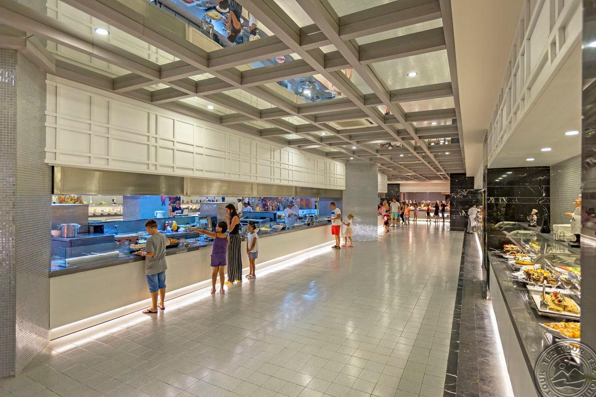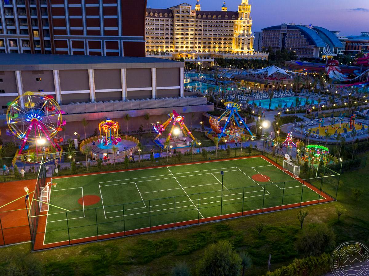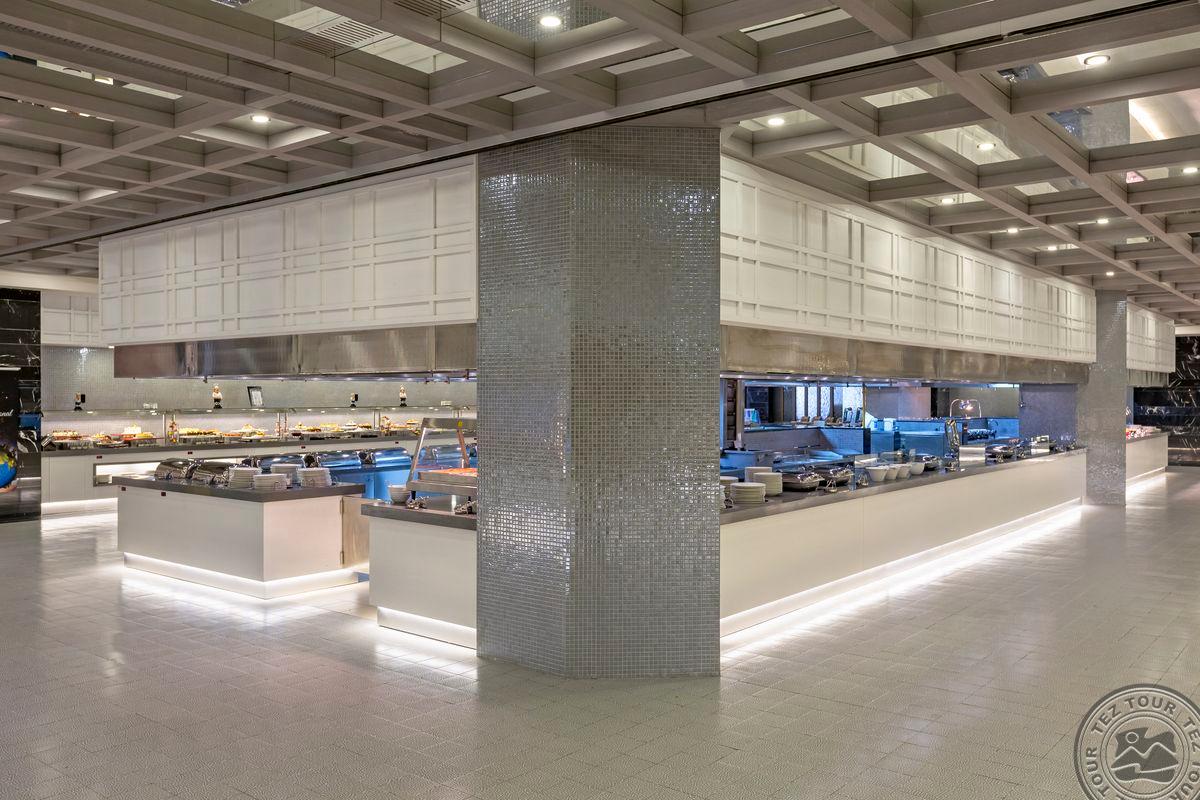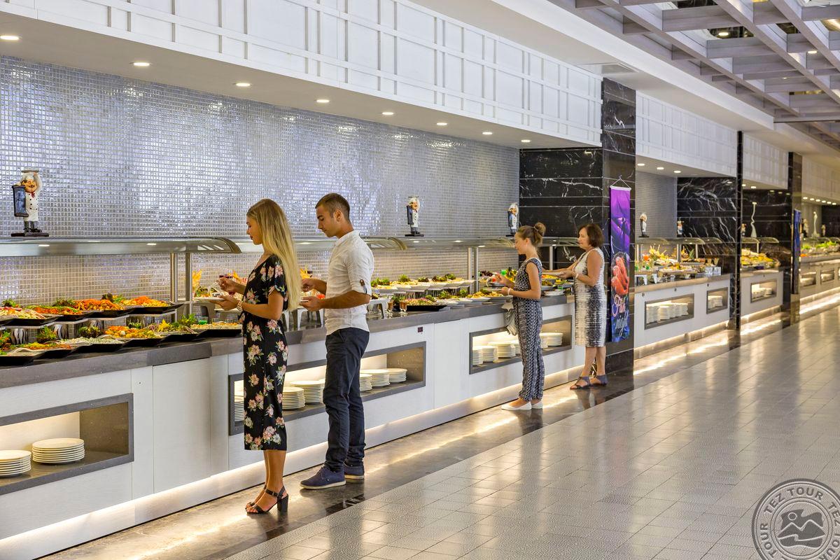 Территория:> рестораны: 1 (основной, есть диетическое питание) бары: 11 крытые бассейны: 1 (работает только в зимний период, с подогревом) бассейны: 4 (открытые (один из них с подогревом)) спа-центр конференц-залы: 18 (на 90–3000 чел.) у бассейна полотенца: бесплатно (замена в тот же день – платно) у бассейна зонтики, шезлонги: бесплатно (шезлонги мягкие) химчистка рестораны a la carte: 9 (морепродукты, турецкий, итальянский, дальневосточный, стейк, мексиканский, суши, испанский, теппаняки– по предварительной записи, платно, работают в определенные дни недели) кабинет врача водные горки: 8 (для взрослых, в том числе King kobra, 15.04.-31.10, в определенные часы, в зависимости от погодных условий) прачечная Wi-Fi бесплатно (на всей территории; высокоскоростной – платно) парикмахерская магазины
