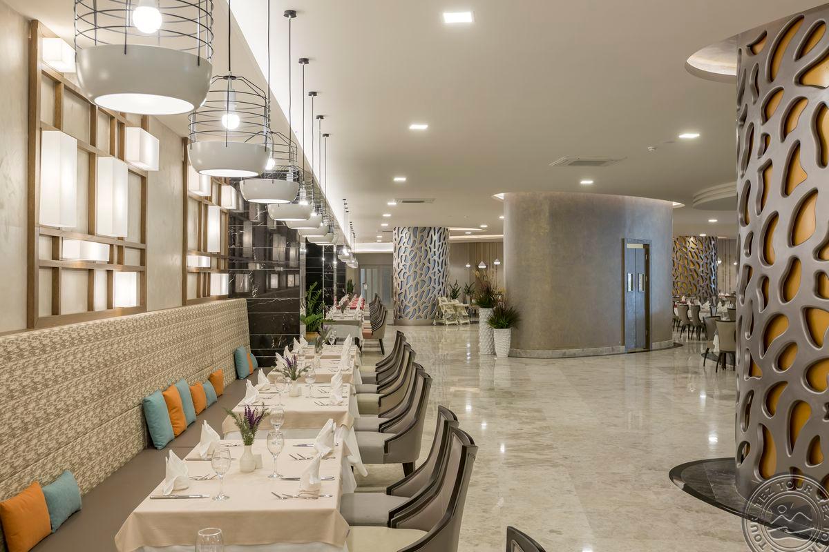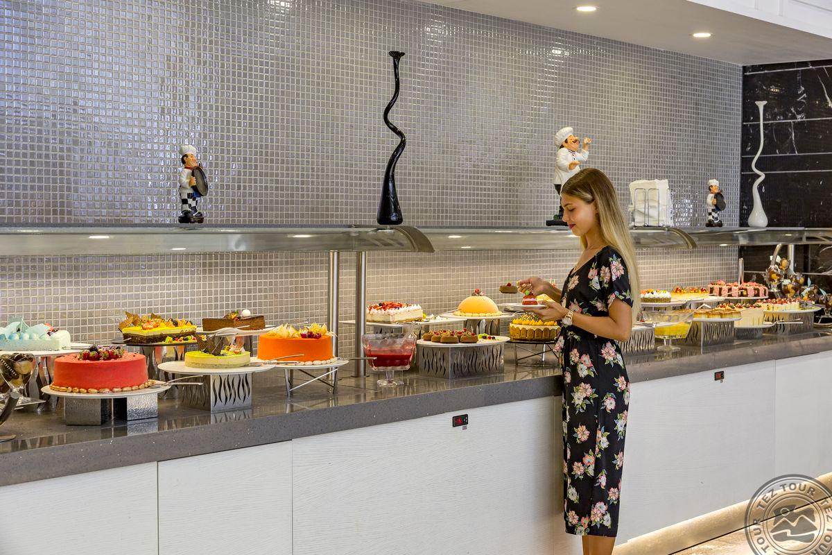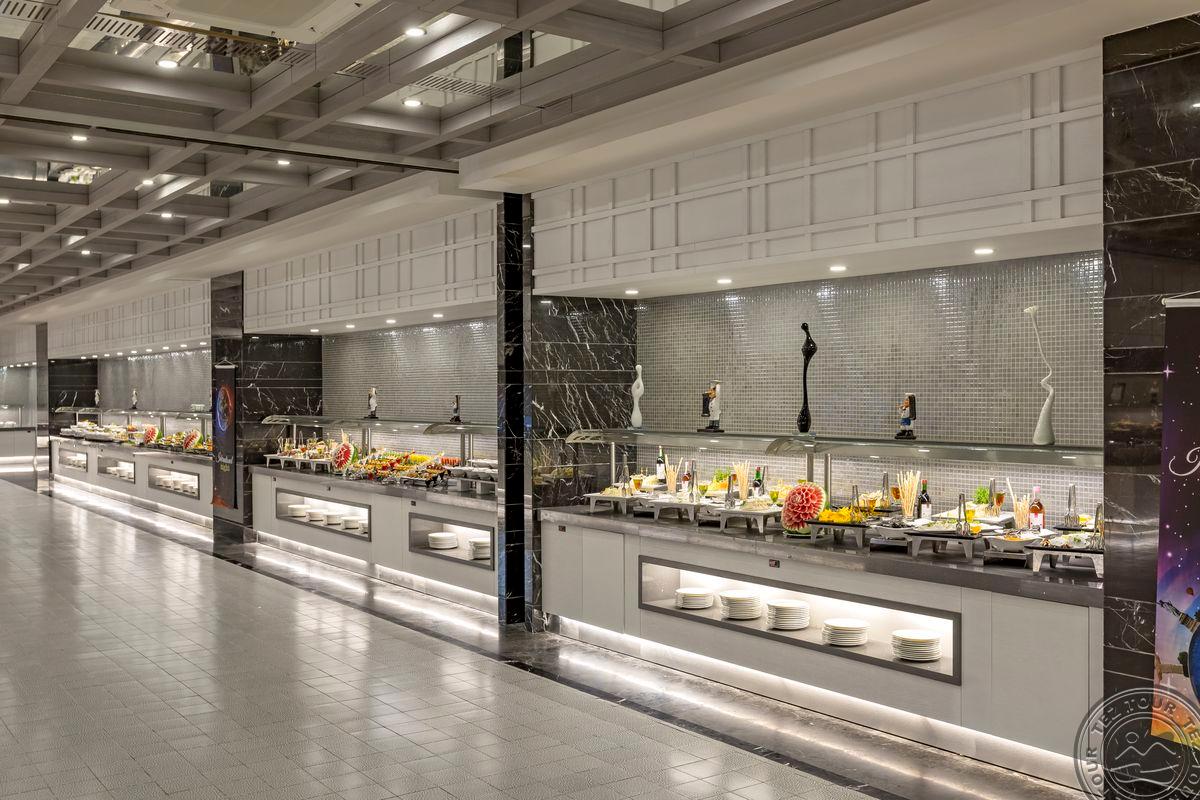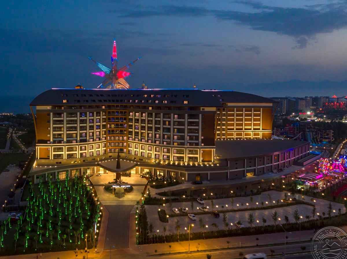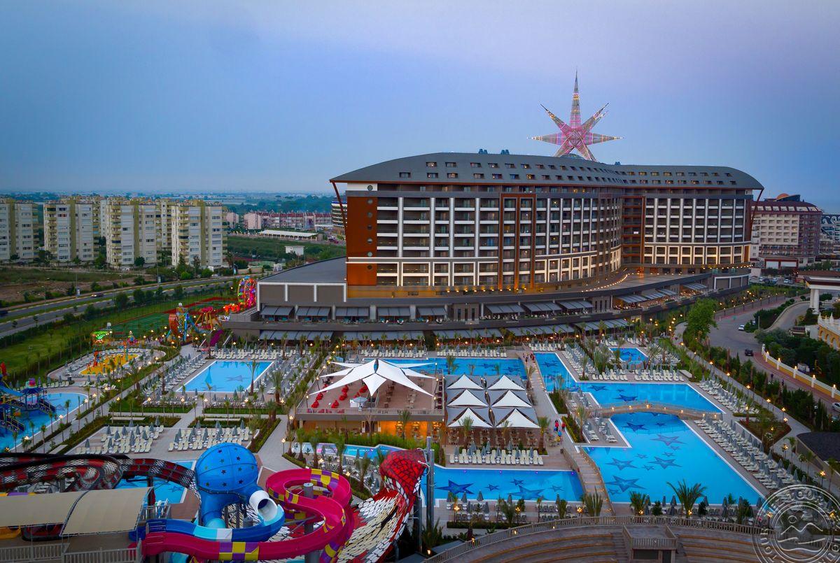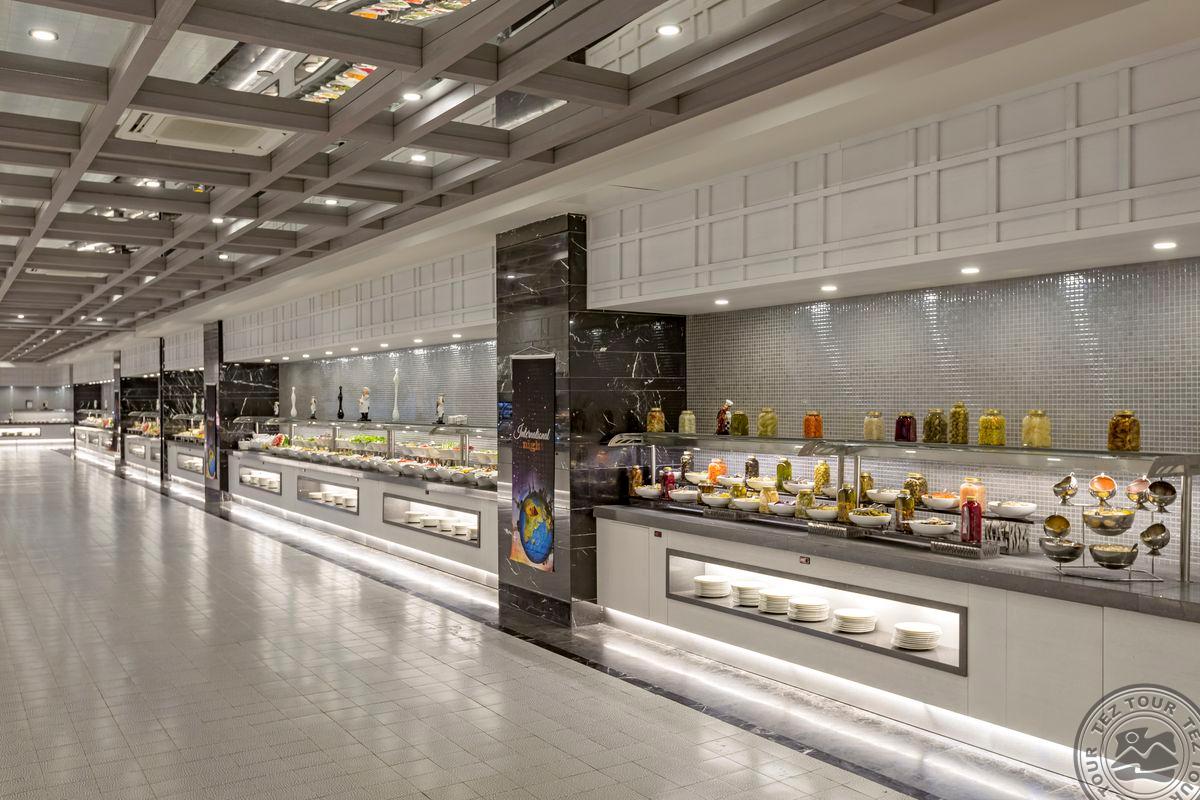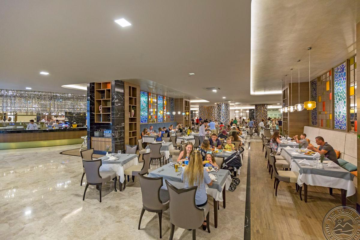 Территория:> рестораны: 1 (основной, есть диетическое питание) бары: 11 крытые бассейны: 1 (работает только в зимний период, с подогревом) бассейны: 4 (открытые (один из них с подогревом)) спа-центр конференц-залы: 18 (на 90–3000 чел.) у бассейна полотенца: бесплатно (замена в тот же день – платно) у бассейна зонтики, шезлонги: бесплатно (шезлонги мягкие) химчистка рестораны a la carte: 9 (морепродукты, турецкий, итальянский, дальневосточный, стейк, мексиканский, суши, испанский, теппаняки– по предварительной записи, платно, работают в определенные дни недели) кабинет врача водные горки: 8 (для взрослых, в том числе King kobra, 15.04.-31.10, в определенные часы, в зависимости от погодных условий) прачечная Wi-Fi бесплатно (на всей территории; высокоскоростной – платно) парикмахерская магазины