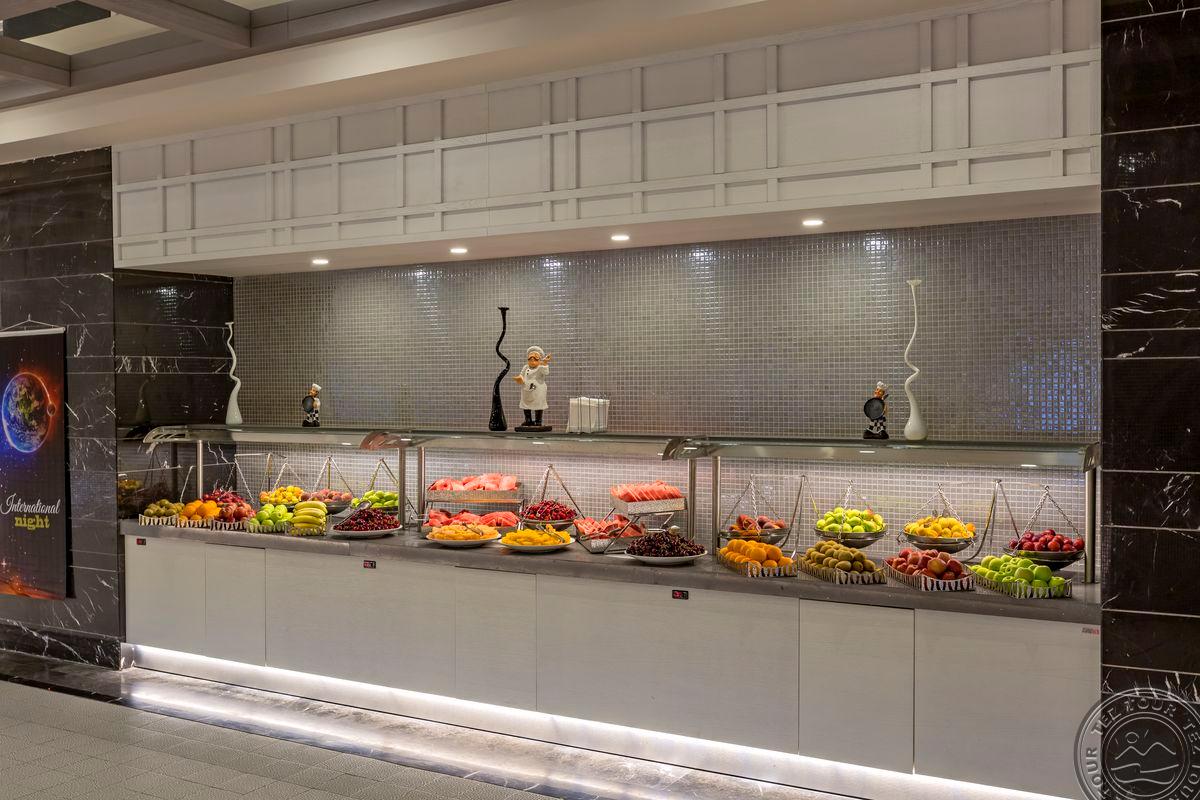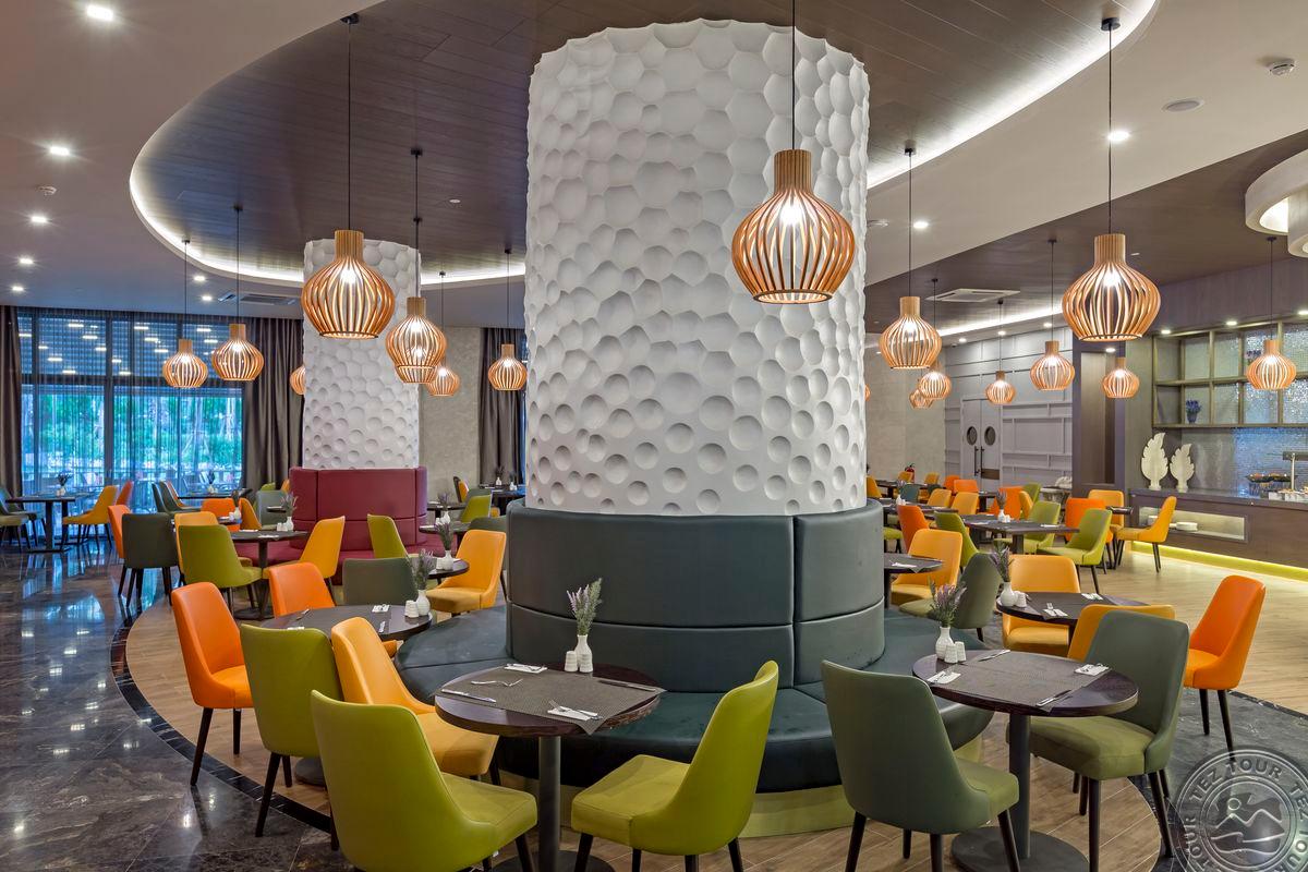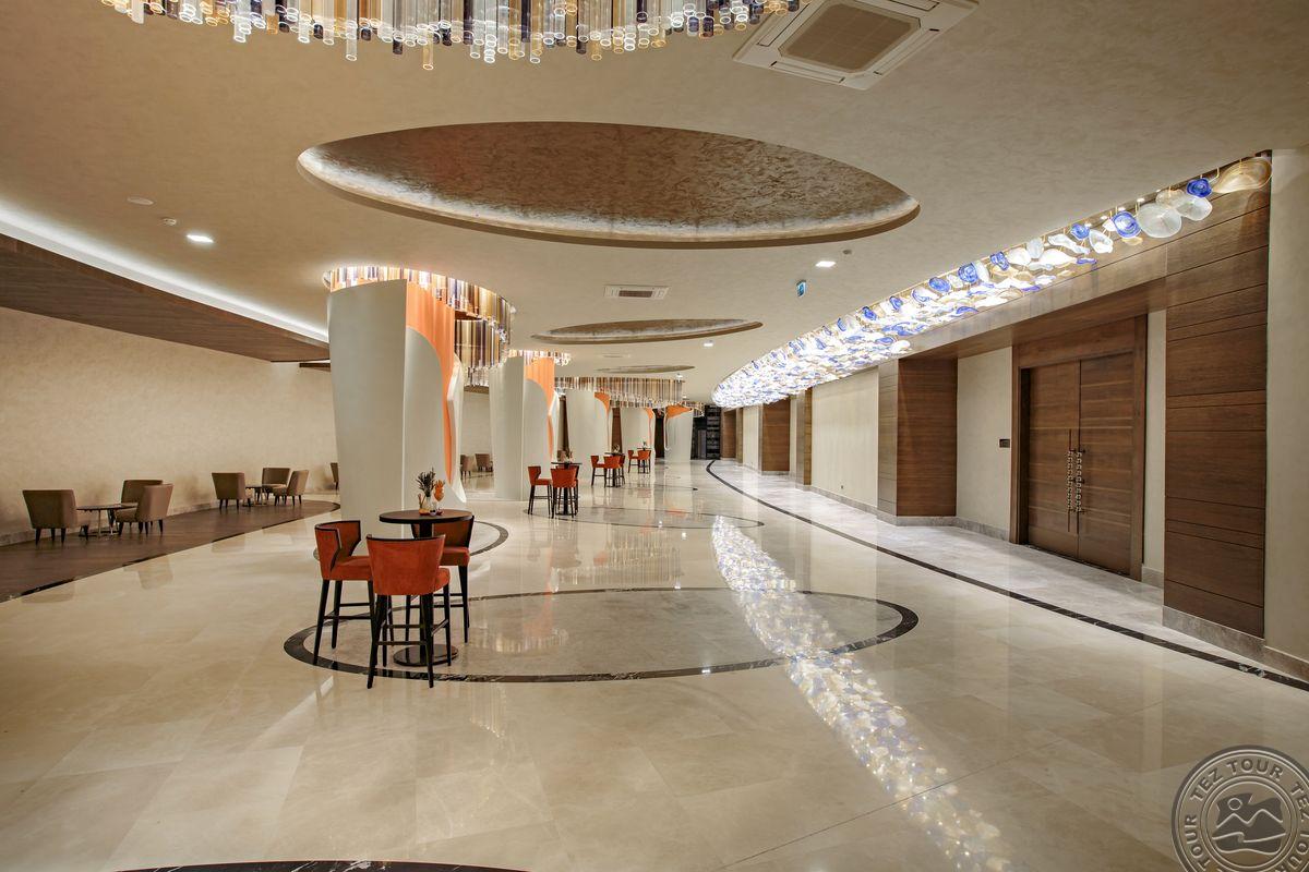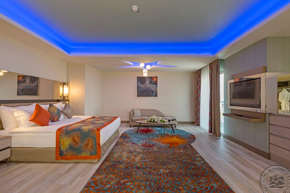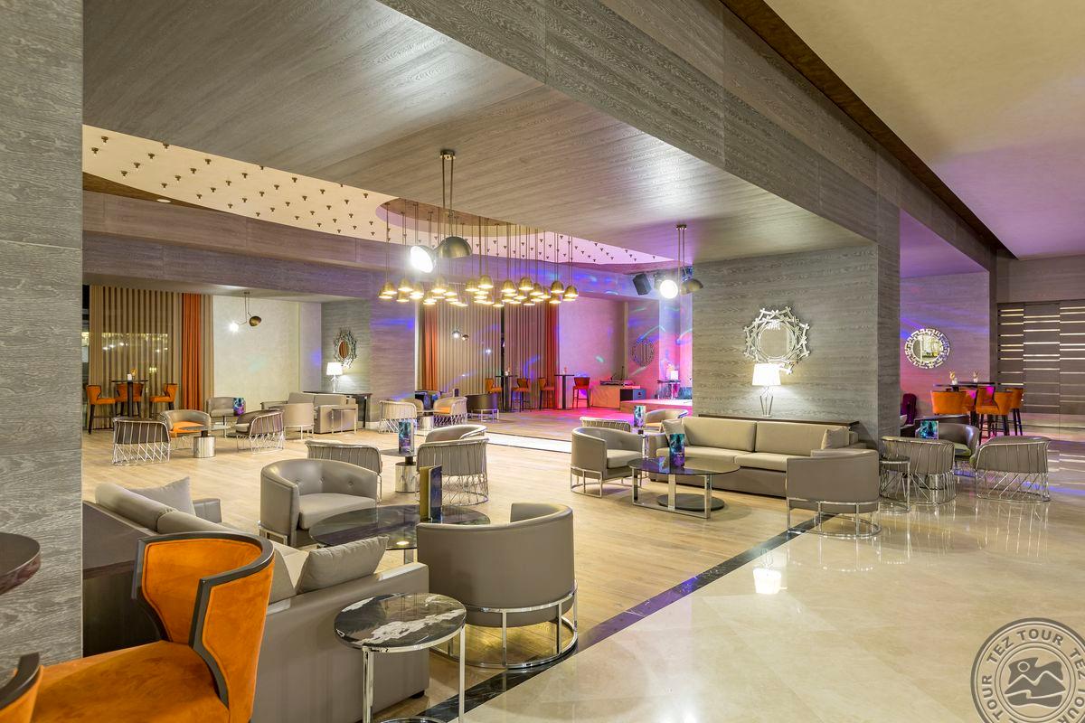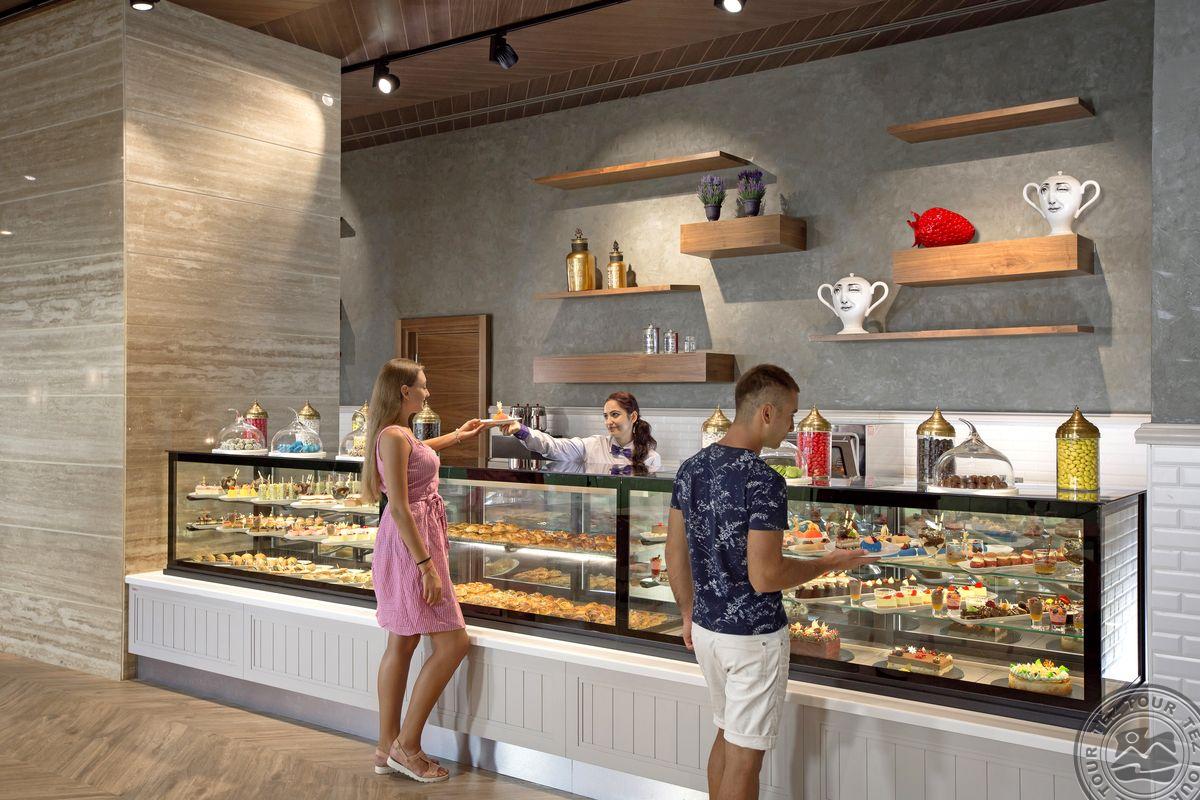 Территория:> рестораны: 1 (основной, есть диетическое питание) бары: 11 крытые бассейны: 1 (работает только в зимний период, с подогревом) бассейны: 4 (открытые (один из них с подогревом)) спа-центр конференц-залы: 18 (на 90–3000 чел.) у бассейна полотенца: бесплатно (замена в тот же день – платно) у бассейна зонтики, шезлонги: бесплатно (шезлонги мягкие) химчистка рестораны a la carte: 9 (морепродукты, турецкий, итальянский, дальневосточный, стейк, мексиканский, суши, испанский, теппаняки– по предварительной записи, платно, работают в определенные дни недели) кабинет врача водные горки: 8 (для взрослых, в том числе King kobra, 15.04.-31.10, в определенные часы, в зависимости от погодных условий) прачечная Wi-Fi бесплатно (на всей территории; высокоскоростной – платно) парикмахерская магазины