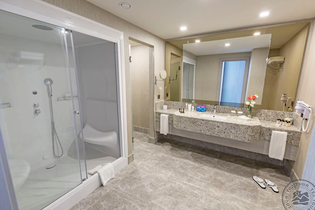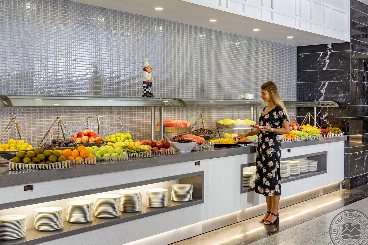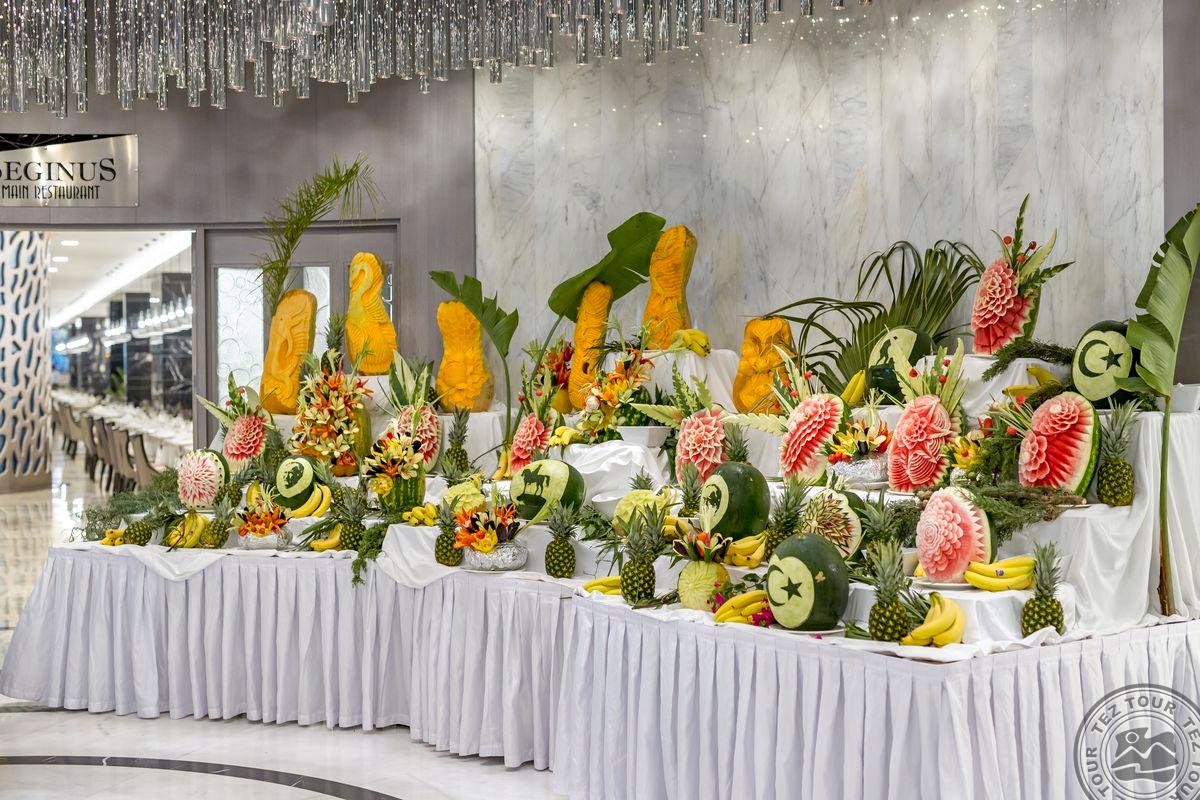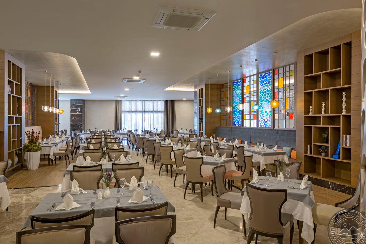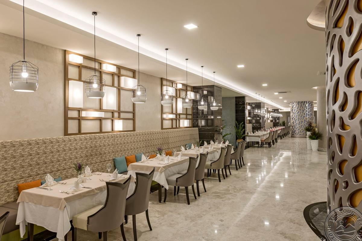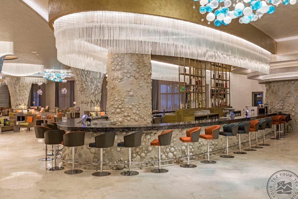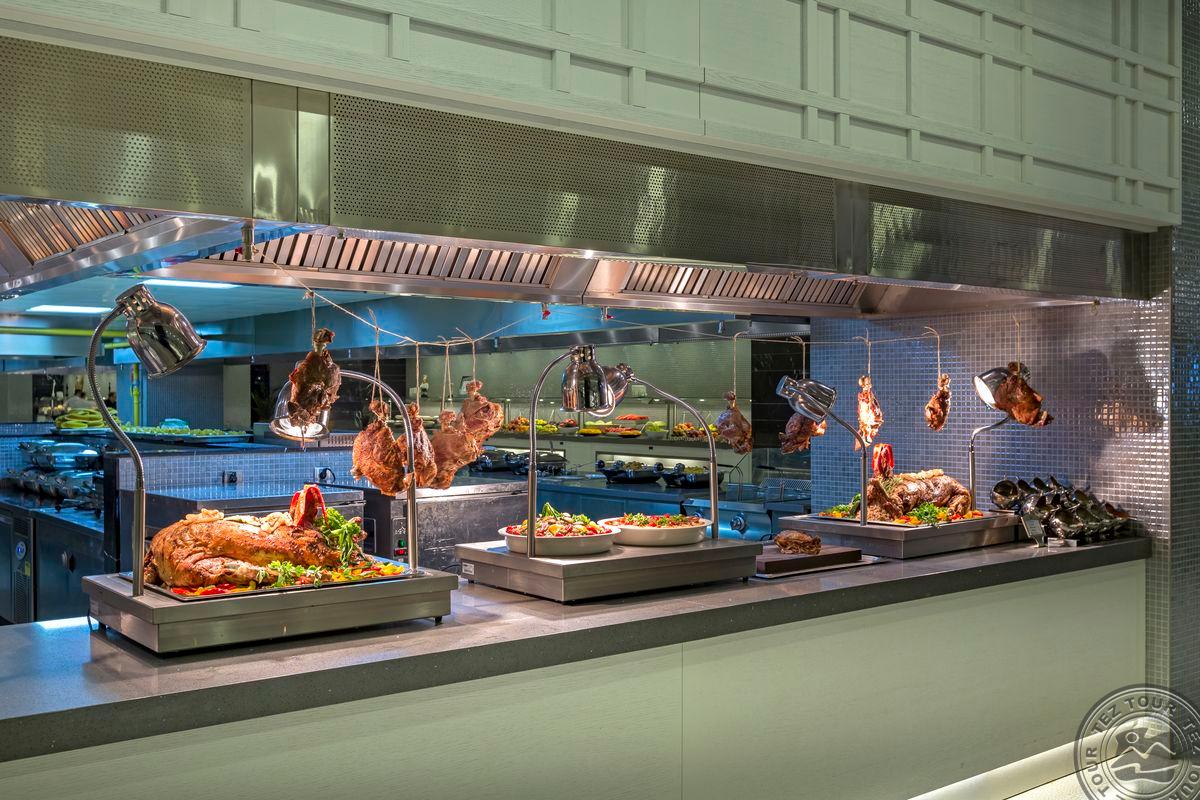 Территория:> рестораны: 1 (основной, есть диетическое питание) бары: 11 крытые бассейны: 1 (работает только в зимний период, с подогревом) бассейны: 4 (открытые (один из них с подогревом)) спа-центр конференц-залы: 18 (на 90–3000 чел.) у бассейна полотенца: бесплатно (замена в тот же день – платно) у бассейна зонтики, шезлонги: бесплатно (шезлонги мягкие) химчистка рестораны a la carte: 9 (морепродукты, турецкий, итальянский, дальневосточный, стейк, мексиканский, суши, испанский, теппаняки– по предварительной записи, платно, работают в определенные дни недели) кабинет врача водные горки: 8 (для взрослых, в том числе King kobra, 15.04.-31.10, в определенные часы, в зависимости от погодных условий) прачечная Wi-Fi бесплатно (на всей территории; высокоскоростной – платно) парикмахерская магазины