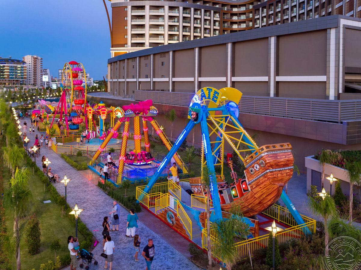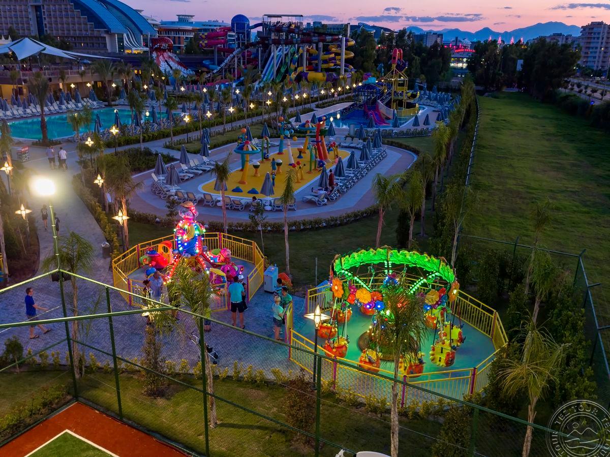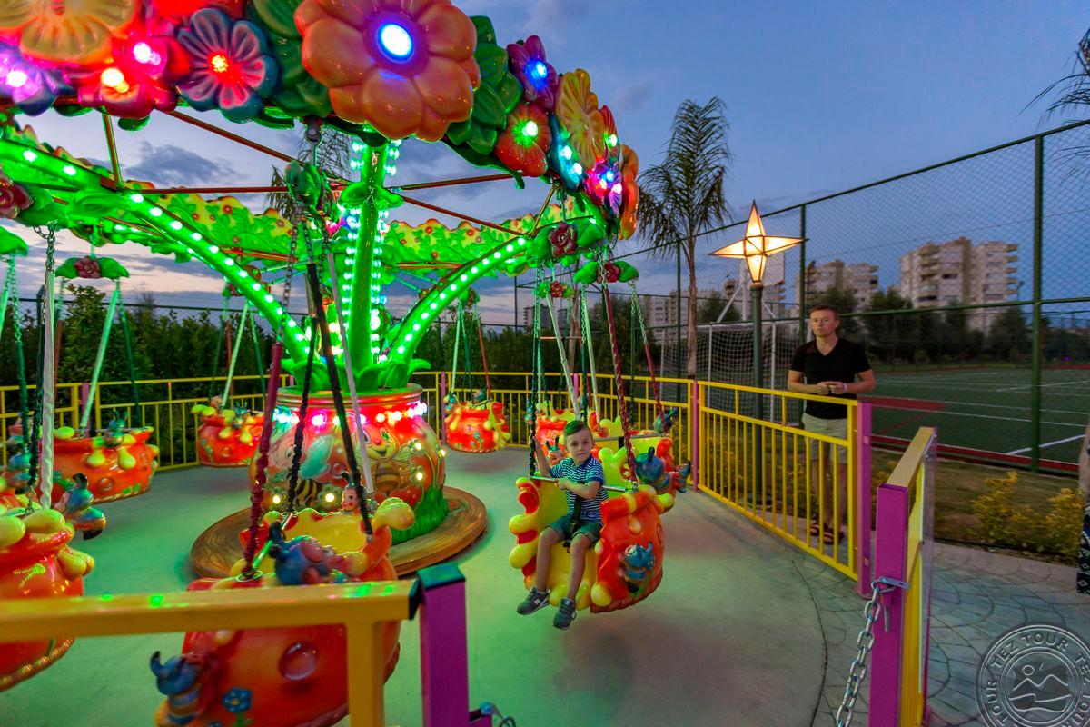 Детям:> детский клуб (4-12 лет) услуги няни: по запросу, платно детская площадка водные горки: 3 (и сплаш-парк; с 15.04 по 31.10, в определенные часы, в зависимости от погодных условий) луна-парк бесплатно (15.04.-31.10, работает в определенные часы в зависимости от погодных условий) детские бассейны: 2 детский буфет