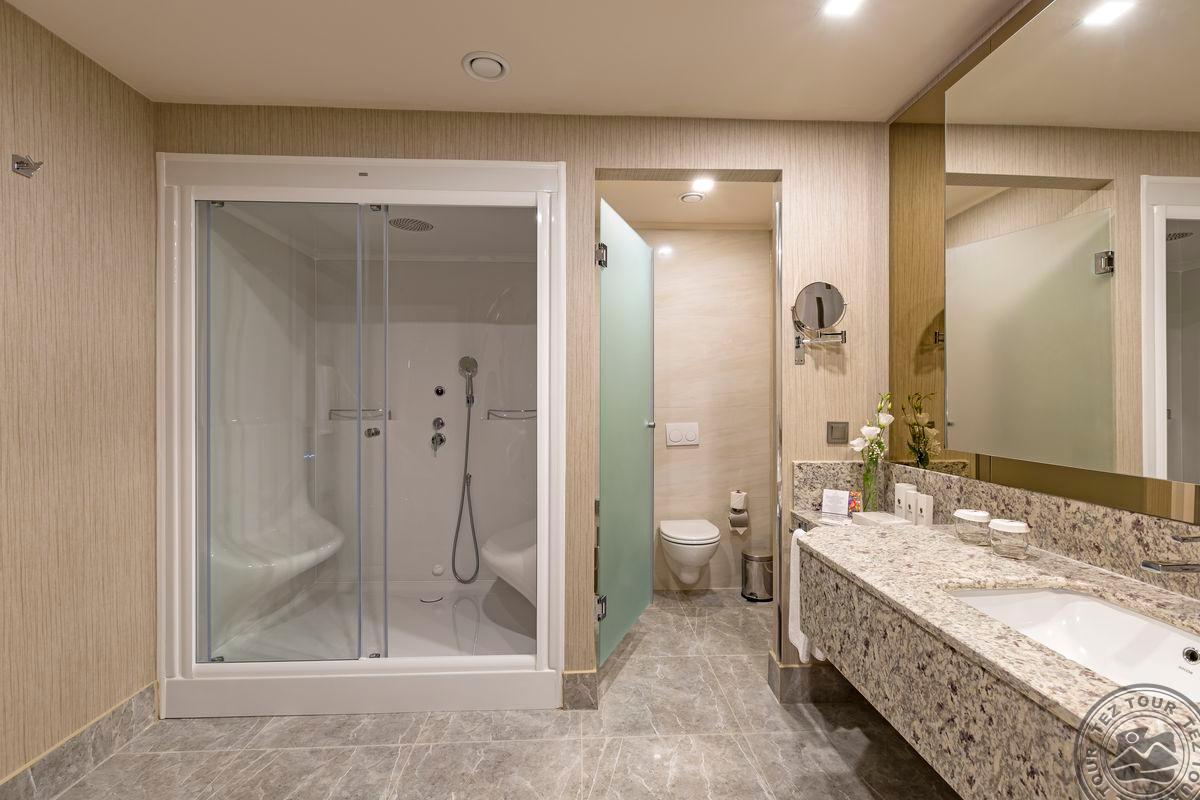 8 двухкомнатных deluxe suite (небольшой холл при входе, гостиная, спальня с дверью, 2 ванные комнаты, одна из них с джакузи, макс. 2+1 чел., 170 м2).