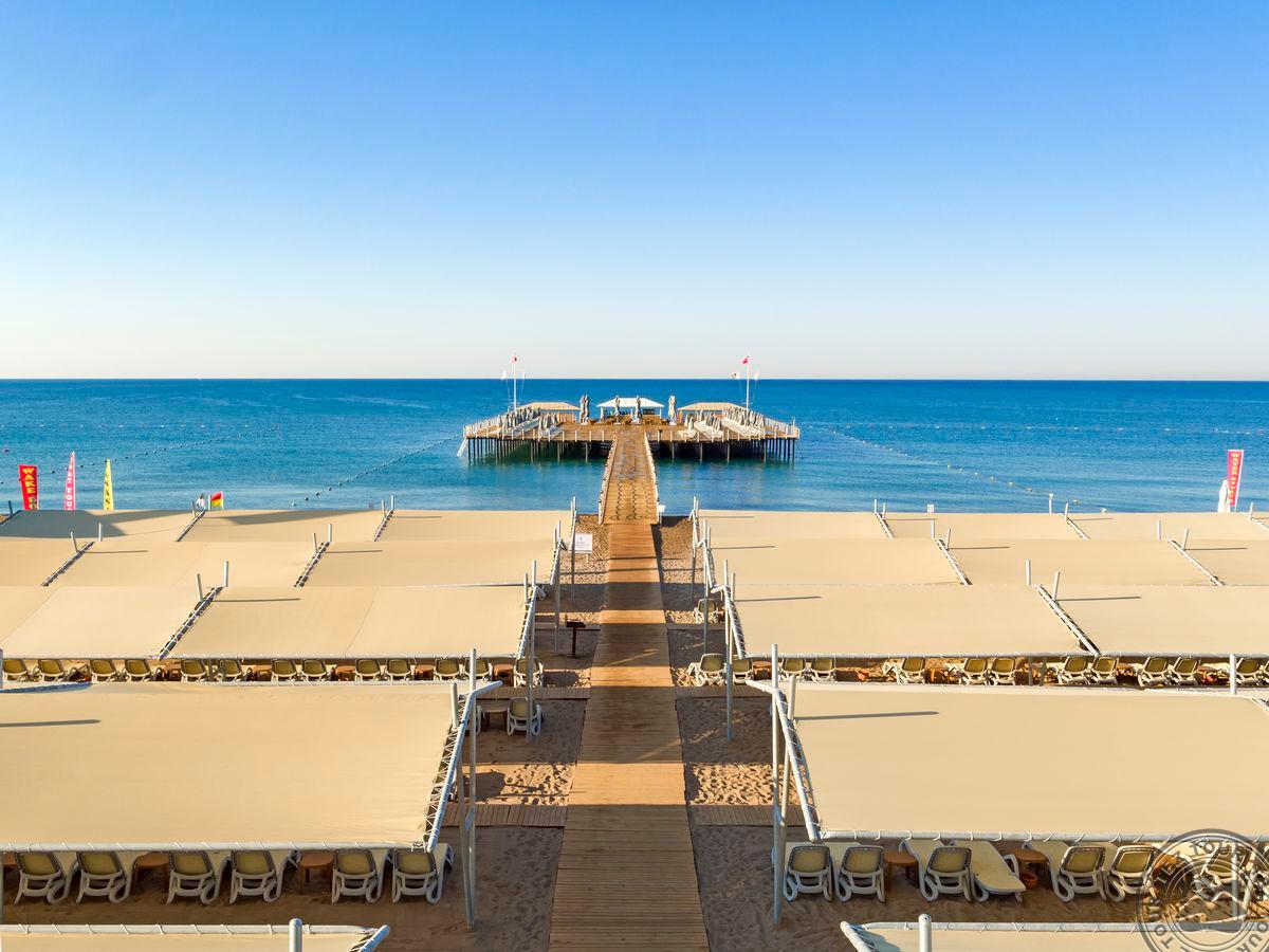 Пляж:> на пляже зонтики, шезлонги: бесплатно (шезлонги мягкие) пирс на пляже полотенца: бесплатно (замена в тот же день – платно) бар на пляже: бесплатно собственный песчано-галечный