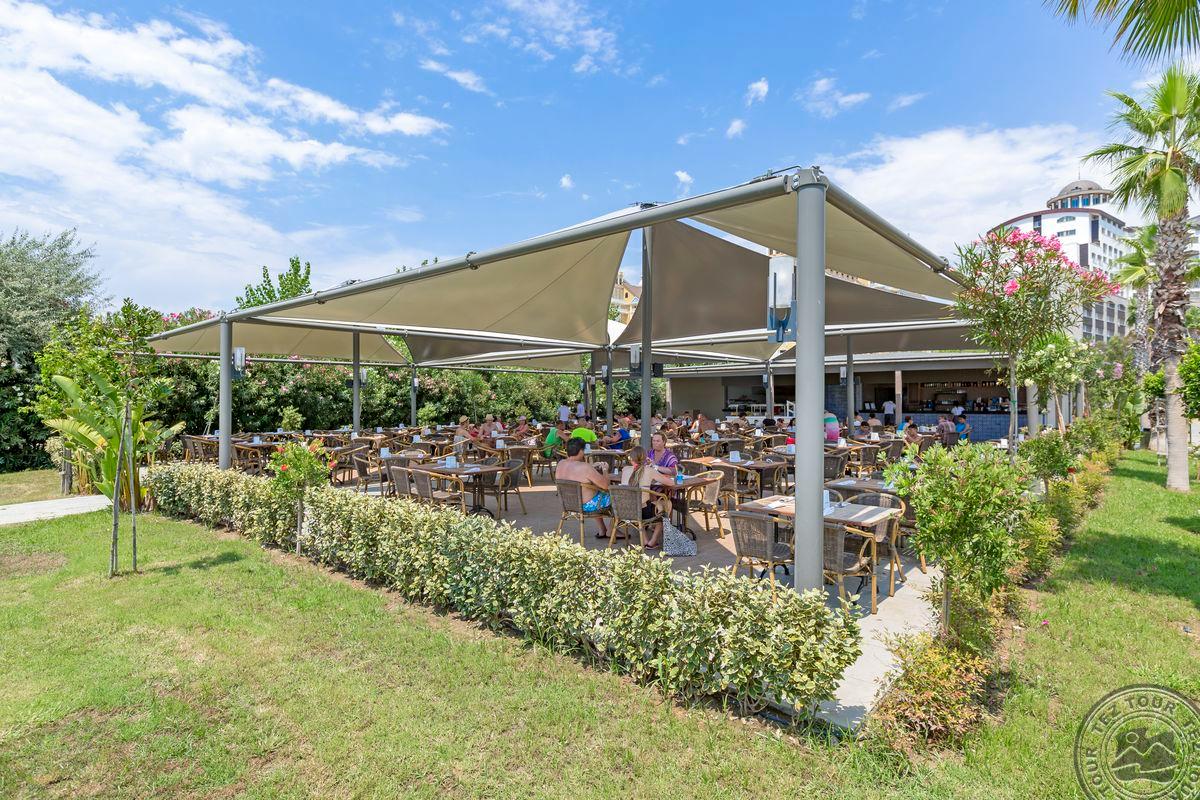 в 15 км от аэропорта, в 17 км от центра г. Анталья, в 250 м от собственного пляжа (проход по зеленой аллее).