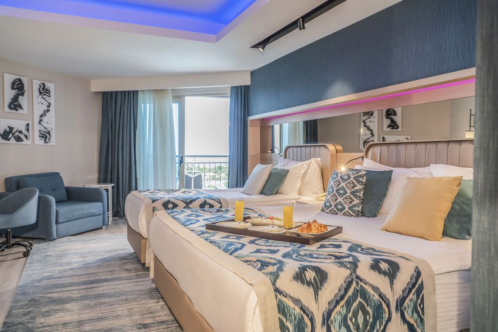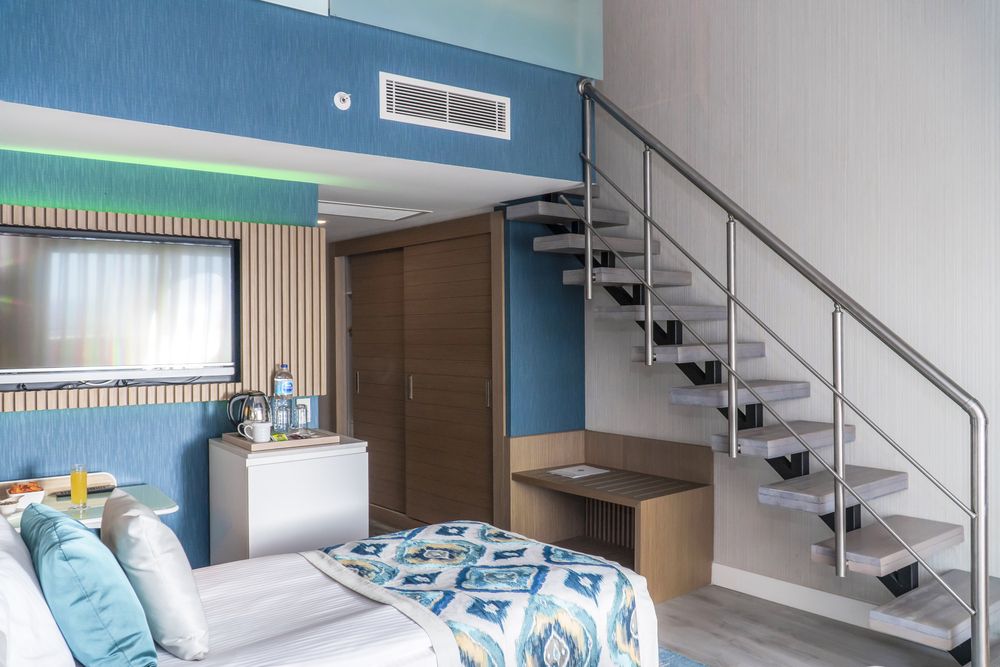 DUBLEX FAMILYROOMВид из номера: на окрестности/мореПлощадь номера: 48 кв.мКомментарий: двухэтажный, 2 спальни
