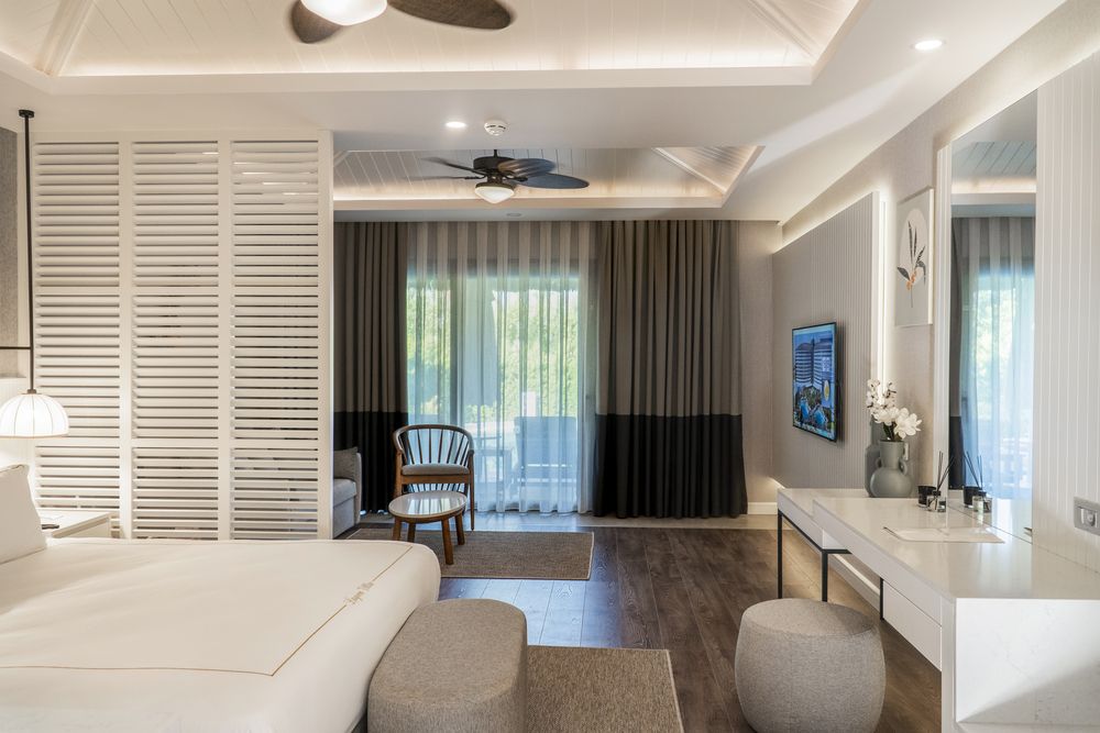KING SUITEВид из номера: на мореПлощадь номера: 80 кв.мКомментарий: 2 спальни, гостиная, межкомнатная дверь