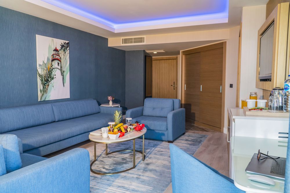 JUNIOR SUITEВид из номера: на мореПлощадь номера: 70 кв.мКомментарий: спальня, гостиная, межкомнатная дверь