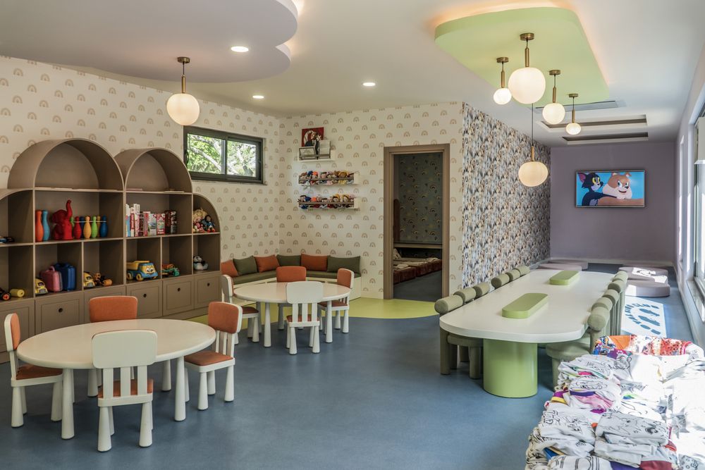 Детский бассейн, Детский клуб: 4-12 лет (лето 2025), Детская площадка, Ресторан(ы) с высокими стульчиками для детей, Детское меню: (в наличии), Питание для младенцев: (в наличии), Услуги няни: (по запросу - платно)