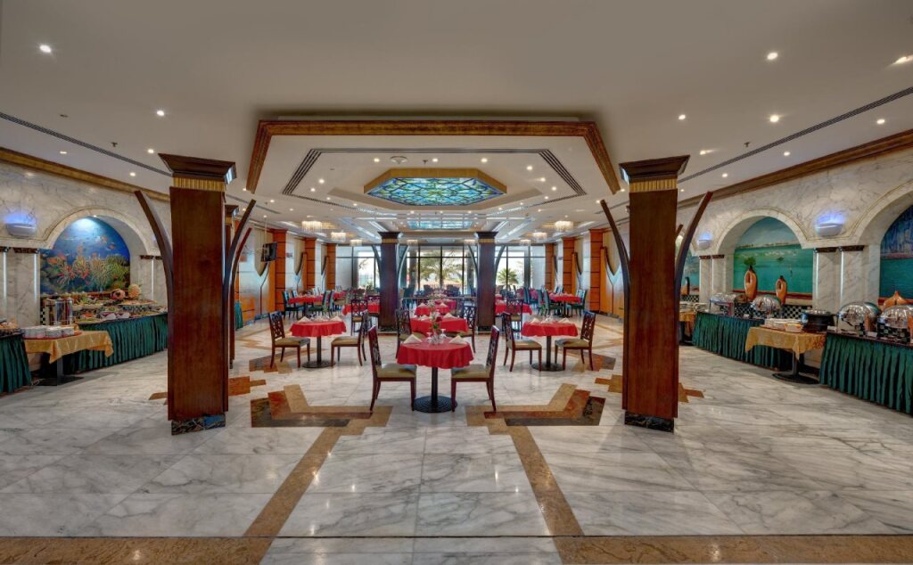 В отеле:2 ресторана отеля предлагают широкий выбор блюд на любой вкус — от арабской и интернациональной кухни до традиционных русских, украинских и армянских блюд, а также деликатесов из морепродуктов. В пляжном баре подают освежающие напитки и лёгкие закуски. В любое время дня вы можете отдохнуть в кафе с видом на залив.; На территории отеля находится открытый бассейн и частный пляж с золотистым песком. Также в отеле есть спа-центр «Time2Relax» с крытым бассейном, парными, фитнес-залом, салоном красоты и массажными кабинетами.; В зонах общественного пользования отеля можно подключиться к Интернету. К услугам гостей также магазины, автомобильная парковка и бесплатный трансфер до торговых центров.
