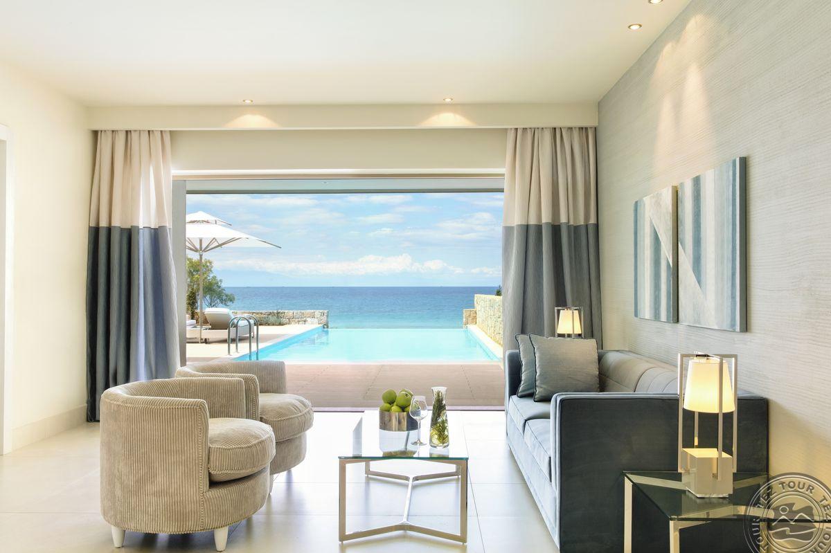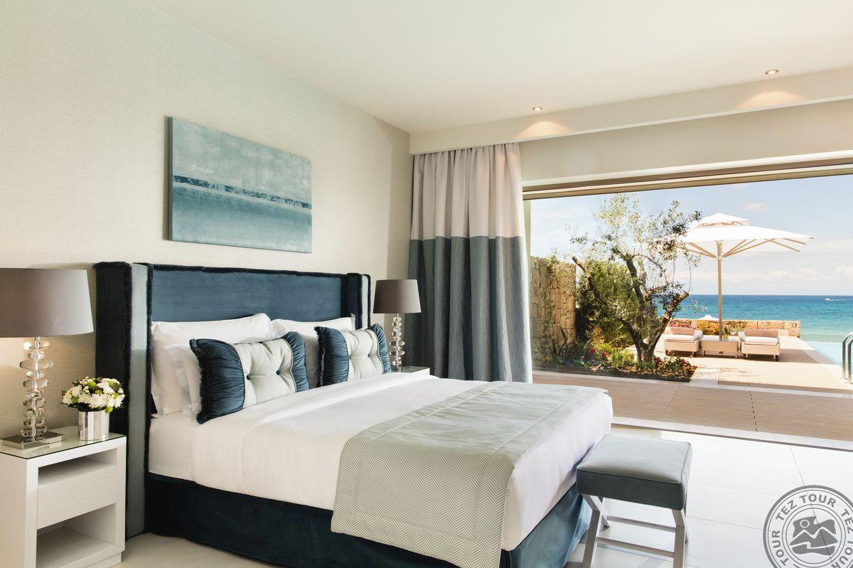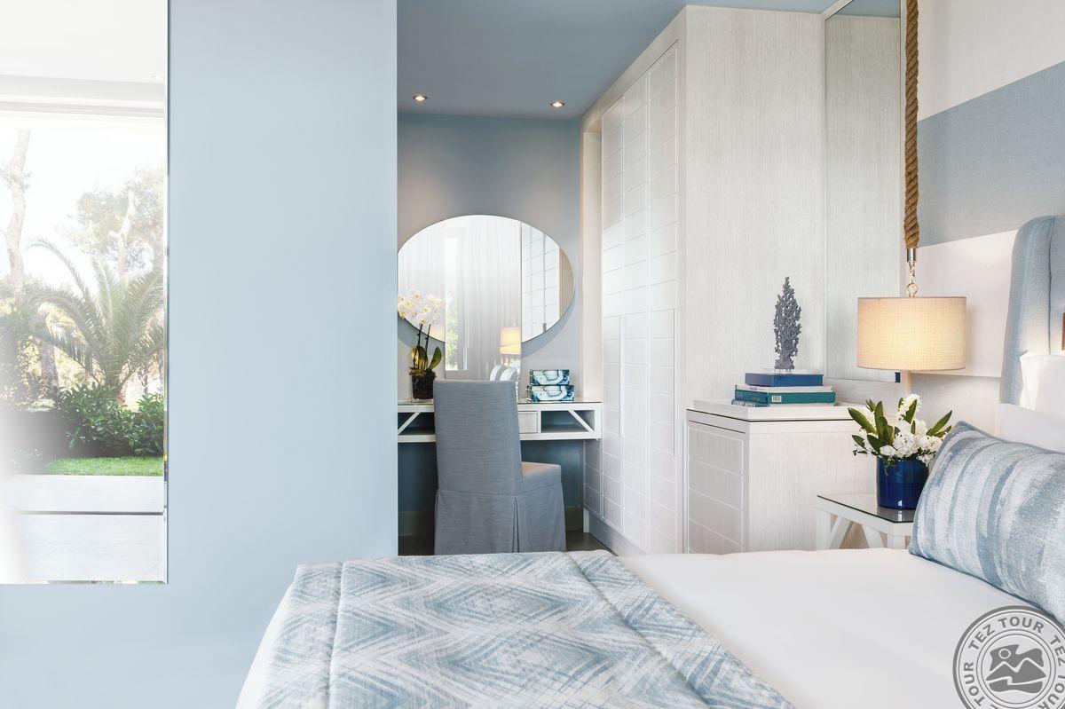 Junior Suite Sea View Private Garden (вид на море, находится в одноэтажном корпусе, однокомнатный номер, осн. кровать – двуспальная, доп. – софа, частный сад 26 м2, макс. 3+1 чел., 45 м2).