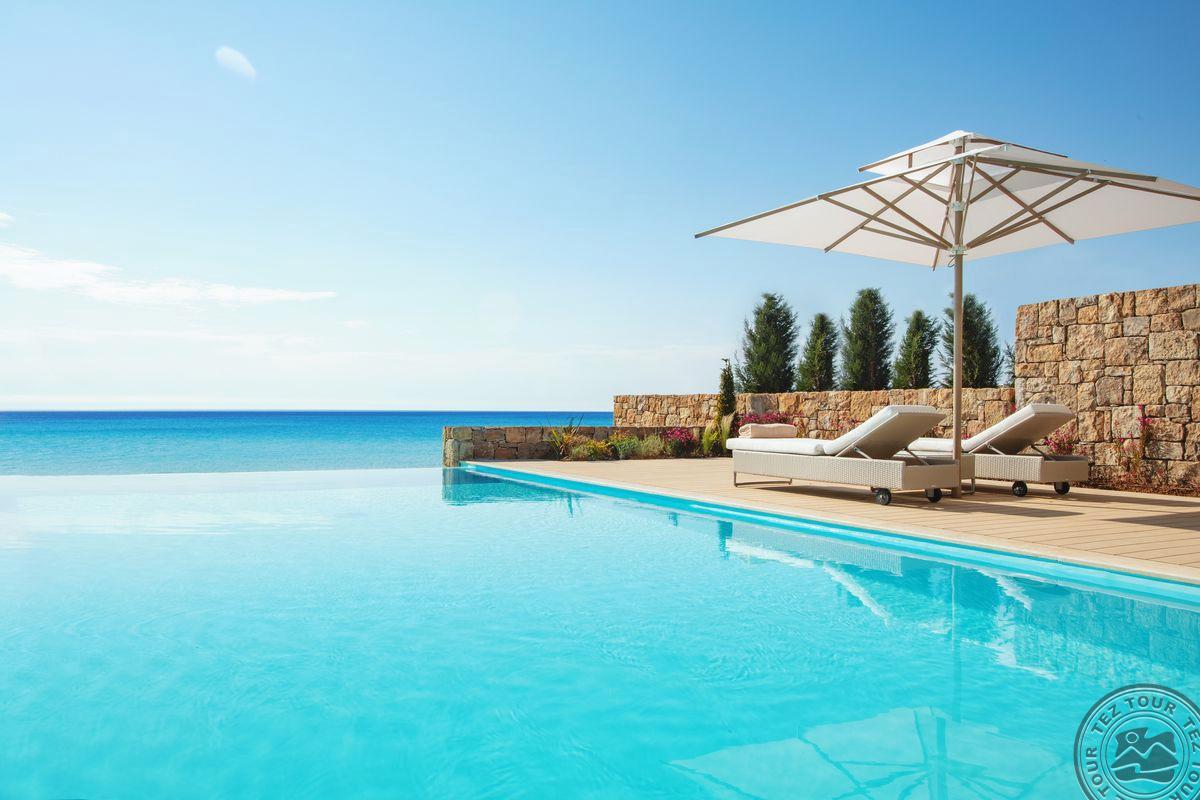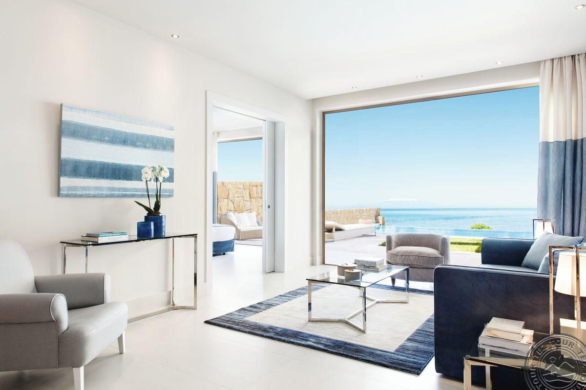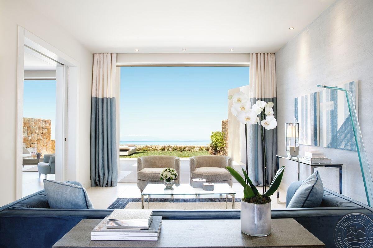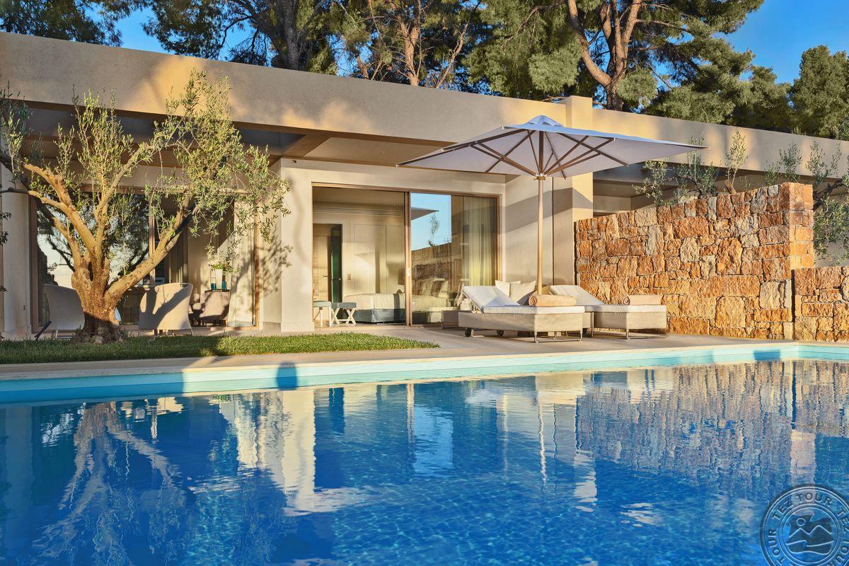Bungalow Suite 2 Bdrm Front Sea View Priv.Pool (прямой вид на море, в одноэтажном здании на первой линии, 2 спальни, отдельная гостиная, 2 ванные комнаты, двуспальная и 2 односпальные кровати, софа, терраса с шезлонгами, индивидуальный подогреваемый бассейн (45 м2), макс. 4+2 чел., 120 м2);