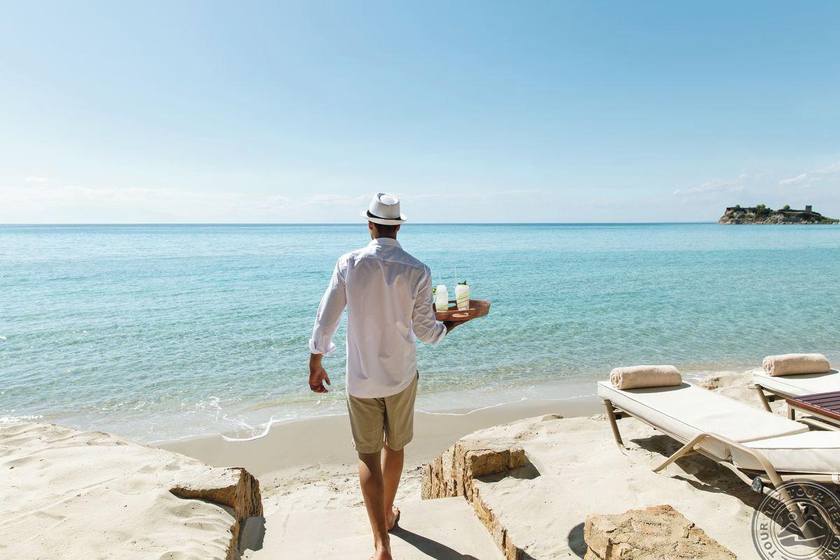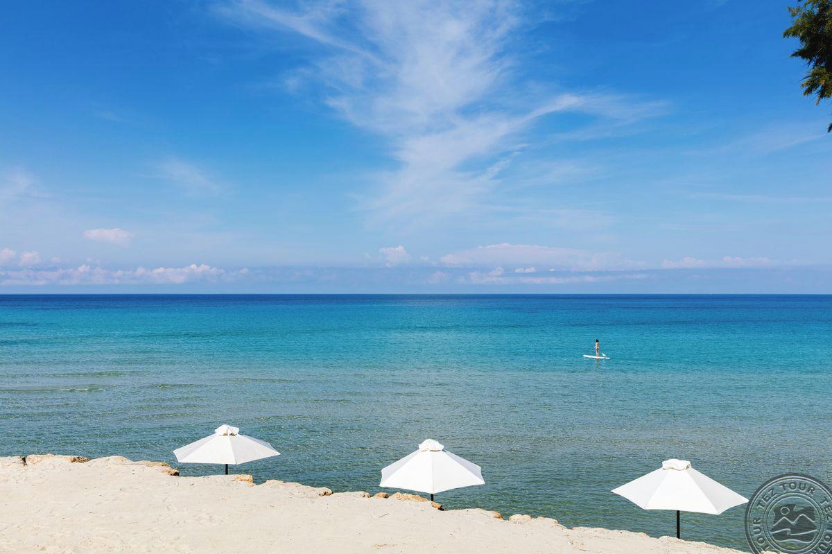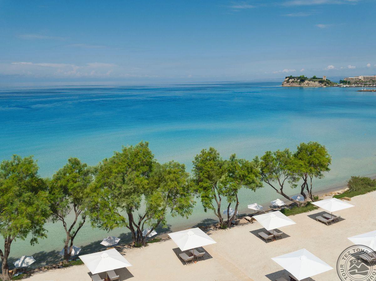 Пляж:> песчаный на пляже зонтики, шезлонги: бесплатно на пляже полотенца: бесплатно вход в море: песчаный собственный (пляж Sani Club, протяженностью 1 км, отмечен Голубым флагом)