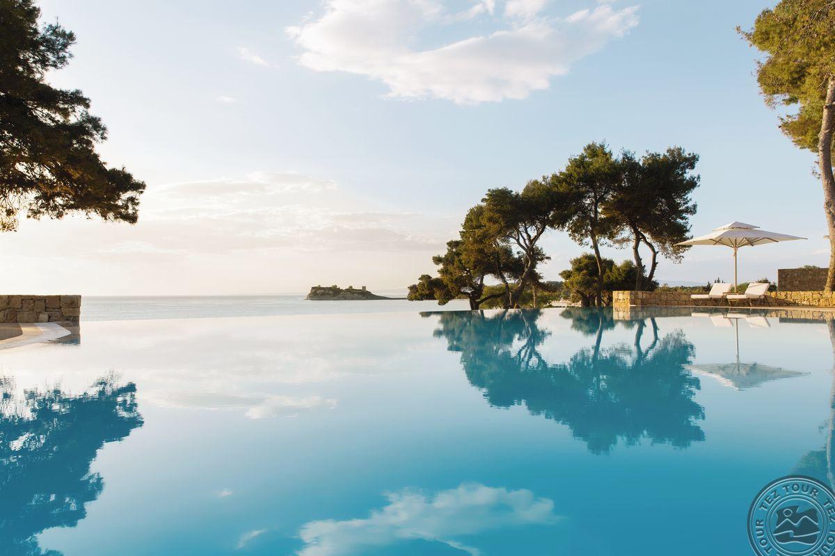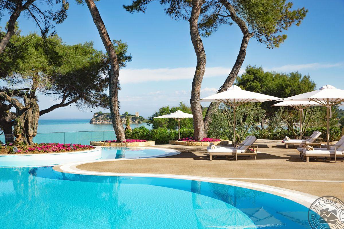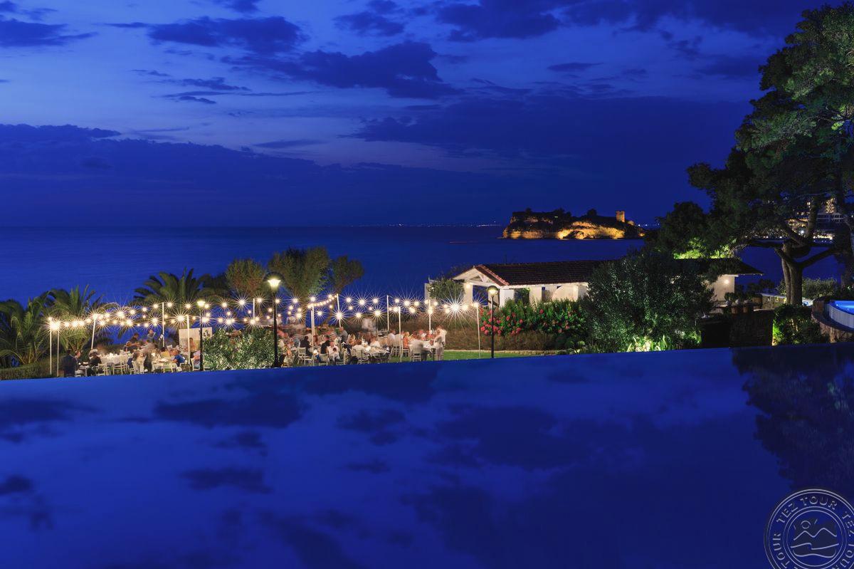 Территория:> рестораны: 1 (главный ресторан "Olympos") бары: 4 крытые бассейны: 1 (с подогревом) камера хранения бассейны: 2 (открытый с пресной водой, инфинити бассейн, все бассейны с подогревом воды, +27С) спа-центр (The Club Spa) у бассейна полотенца: бесплатно ТВ-зал у бассейна зонтики, шезлонги: бесплатно рестораны a la carte: 4 (греческая таверна Ouzerie, Cabana – французская кухня, морепродукты, Pines – греческая кухня, Club Lounge – средиземноморская кухня) библиотека (и DVD-тека) врач по вызову (платно) Интернет-клуб бесплатно Wi-Fi бесплатно обмен валюты парковка бесплатно прачечная платно (по запросу) магазины электромобиль