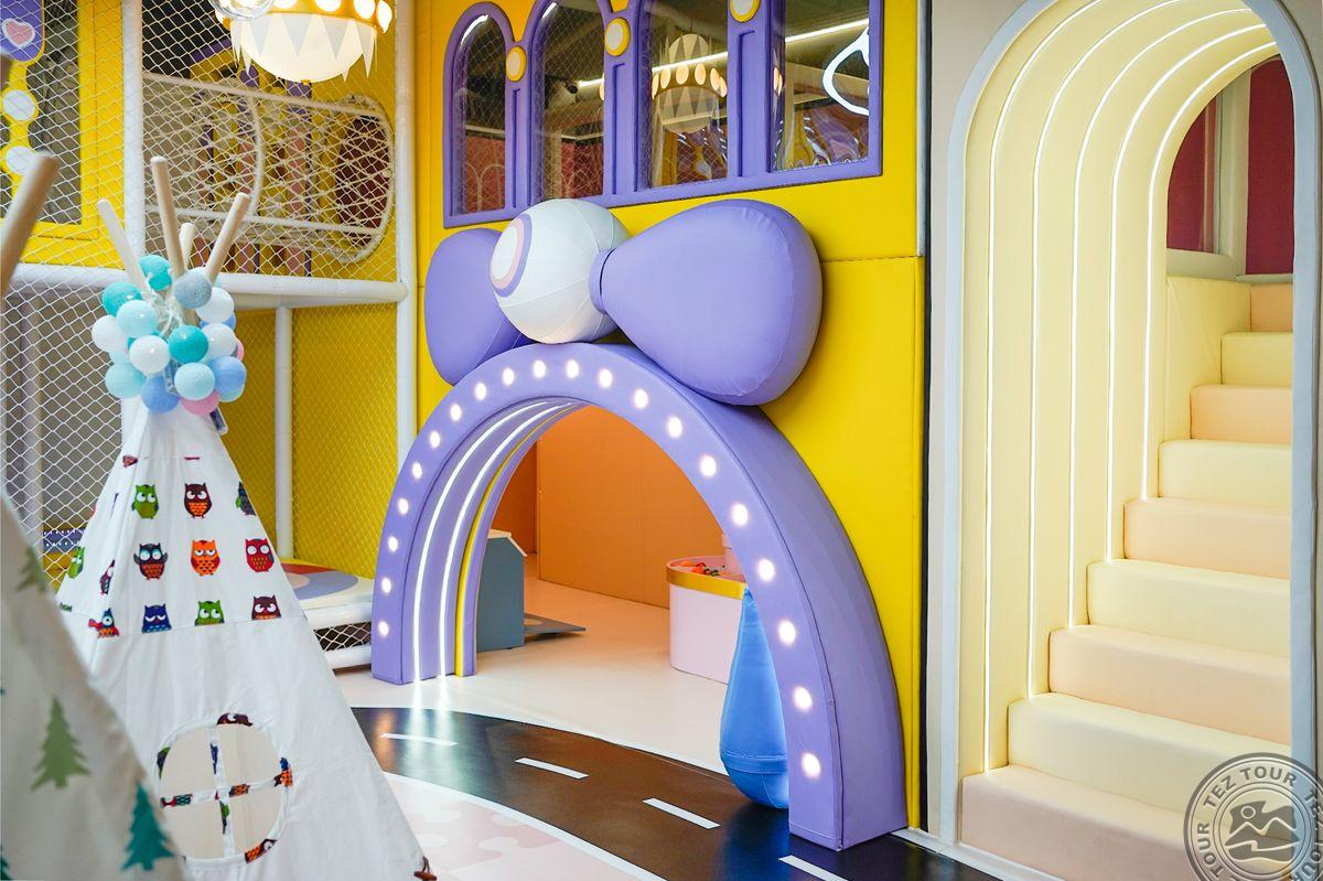 Детям:> детский клуб детский бассейн: есть (splash) услуги няни: платно детская площадка анимационная программа для детей детский халат (и тапочки) детское меню в ресторане