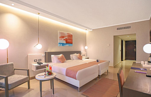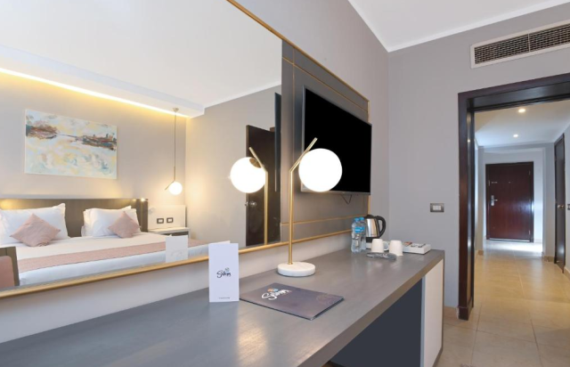 Отель находится между морем и пустыней. Он состоит из административного двухэтажного здания и 9 трехэтажных корпусов. Отель построен в 2021 г.