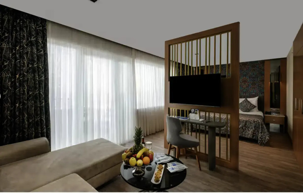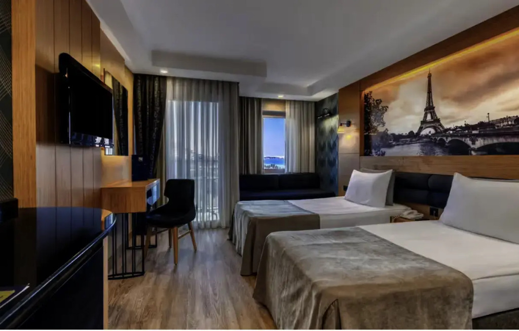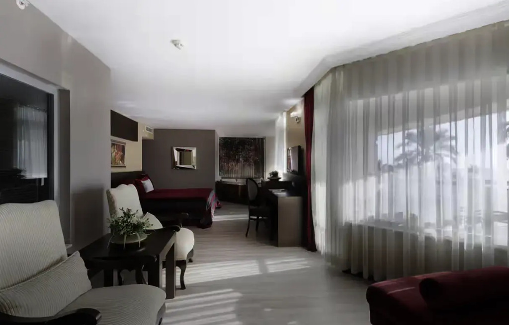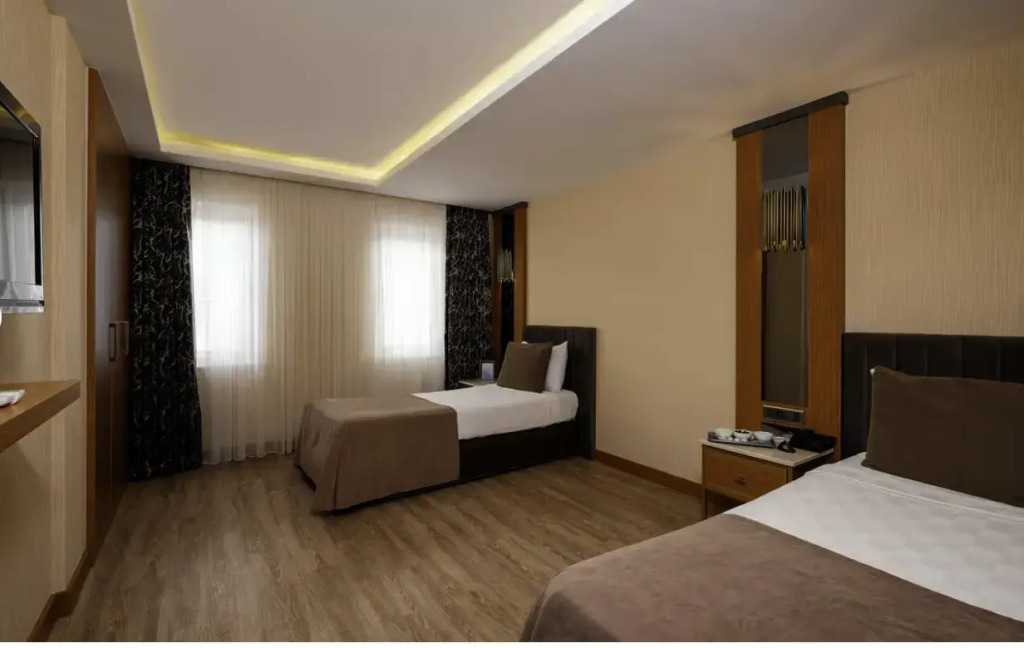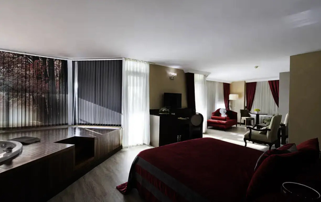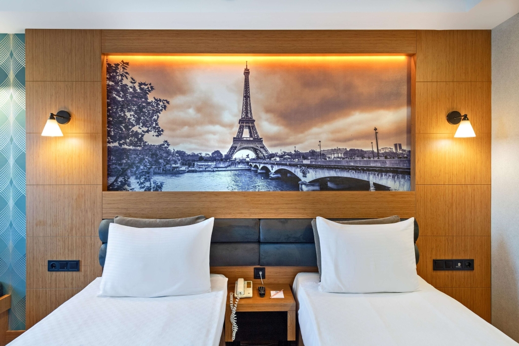 Номер уютно обставлен и оснащён необходимым, чтобы отдохнуть после долгого и насыщенного дня. Имеются душ, телевизор, мини-бар и тапочки. Перечисленные услуги есть не во всех номерах.