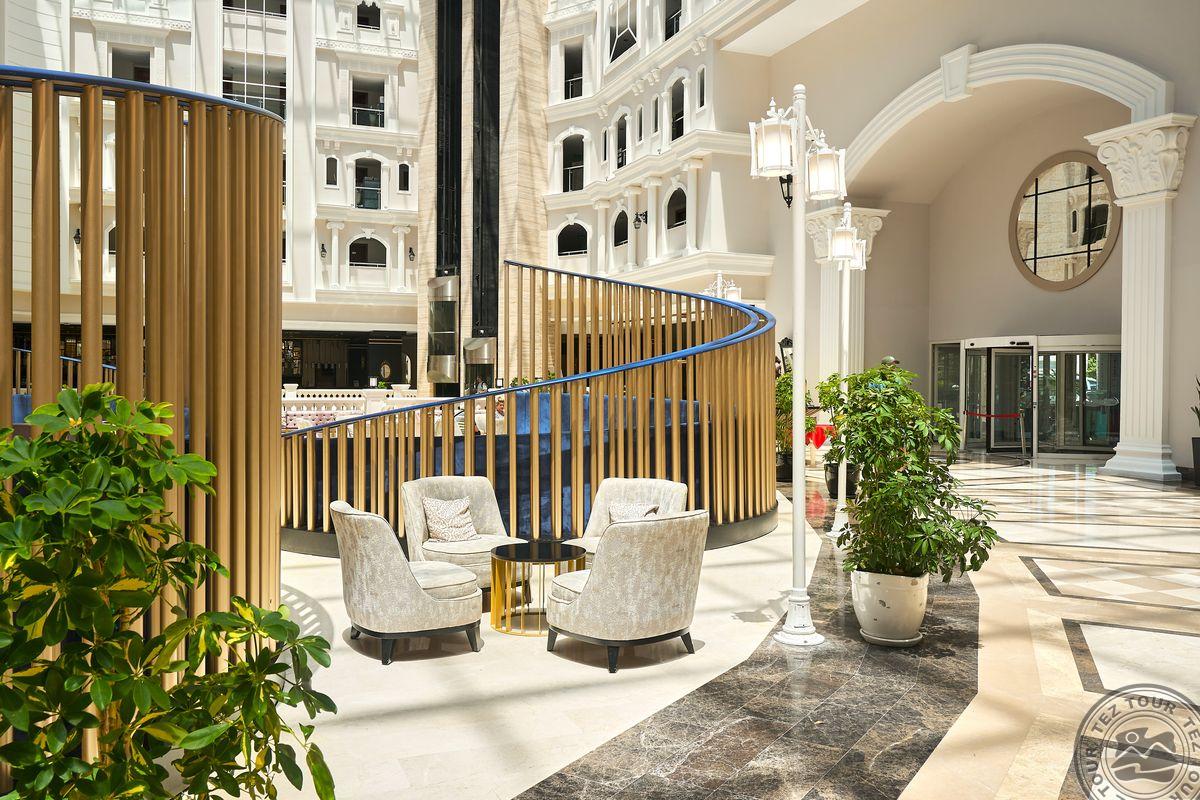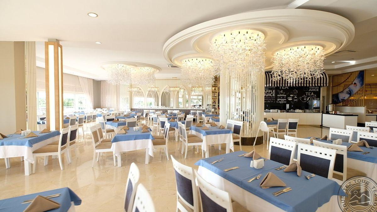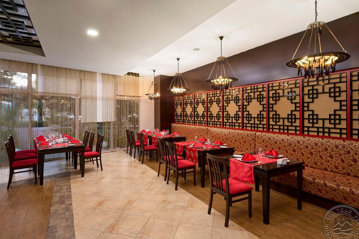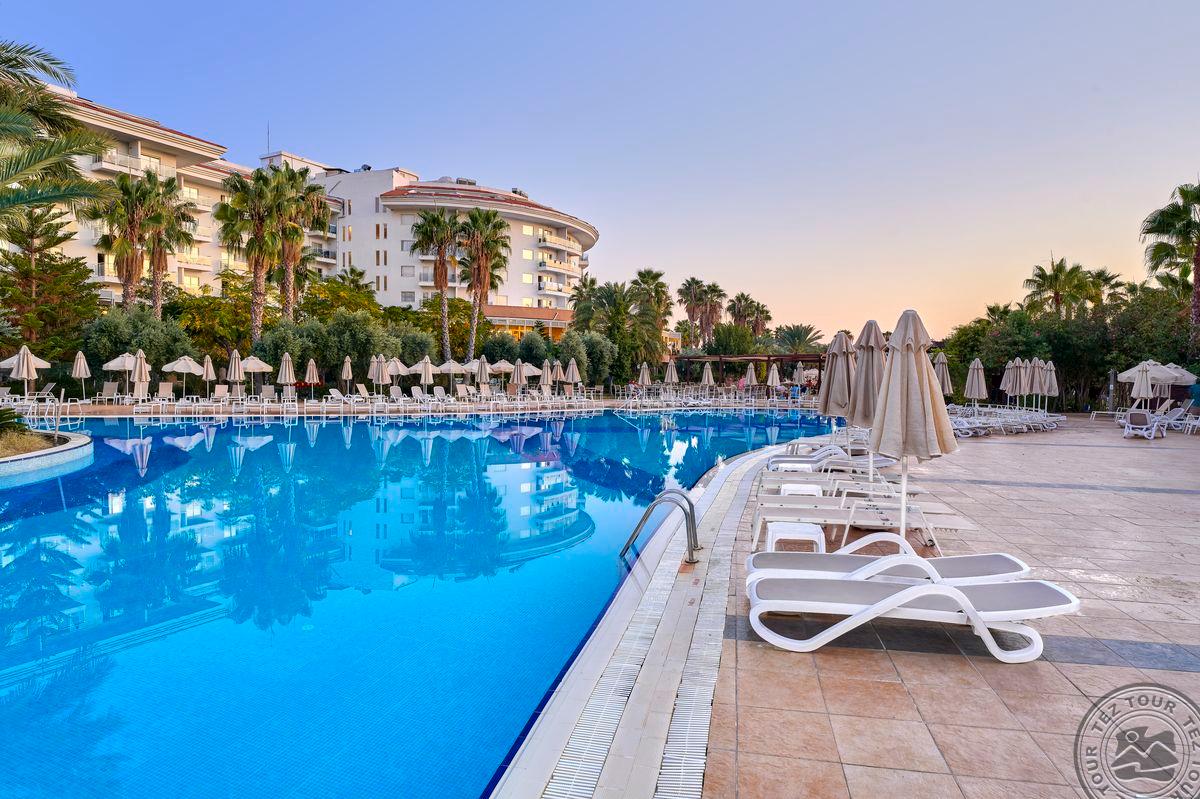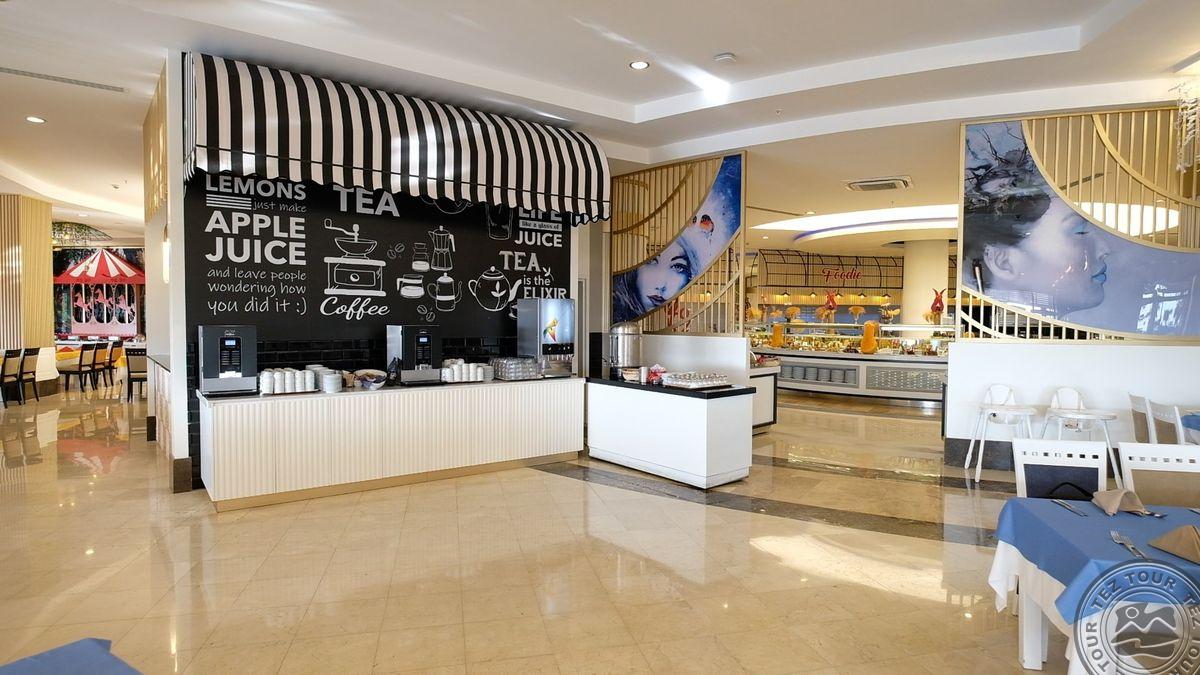 Территория:> рестораны: 1 (основной, есть вегетарианское питание) бары: 7 (один из баров работает 24 часа ) крытые бассейны: 1 бассейны: 3 (открытые) спа-центр (платно) конференц-залы: 4 (на 50–700 чел) у бассейна полотенца: бесплатно рестораны a la carte: 3 (османский, дальневосточный, итальянский - по предваительной записи, за неделю проживания посещение одного ресторана 1 раз – бесплатно) кабинет врача (в определенные часы, платно) кондитерская Wi-Fi бесплатно (на территории) Интернет-кафе платно прачечная платно у бассейна зонтики, шезлонги, матрасы: бесплатно парикмахерская (платно) магазины