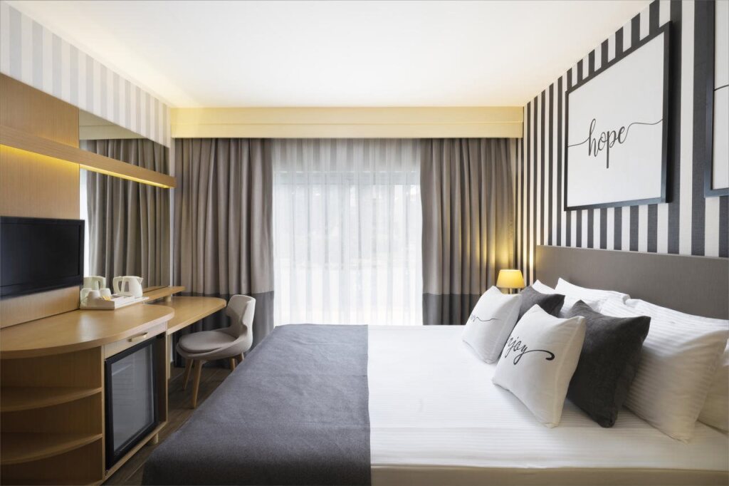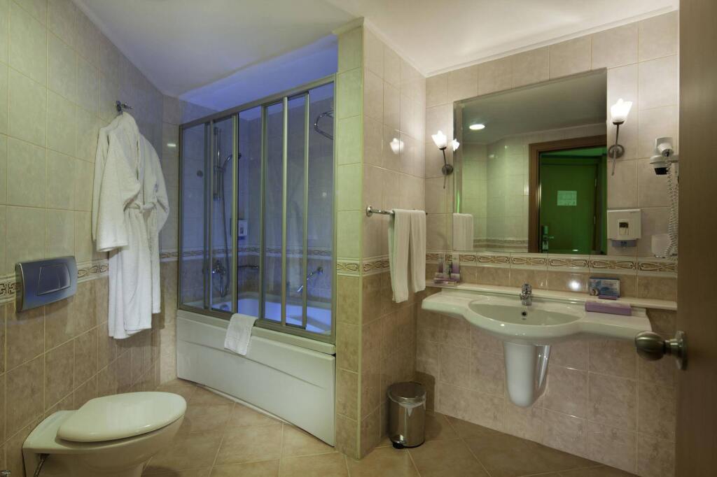 На курорте:Скоротать вечер или приятно провести время перед сном в уютной атмосфере можно в баре. Время вспомнить о хлебе насущном! Для гостей работает ресторан. Попробуйте кофе в кафе — вдруг именно он станет лучшим в городе? Хотите оставаться на связи? На курорте есть бесплатный Wi-Fi.; Если вы путешествуете на машине, припарковаться можно будет на парковке рядом. Гостям также доступны следующие услуги: массажный кабинет, сауна, солярий и спа-центр. Любителям спорта подготовили фитнес-центр, настольный теннис и дайвинг. Готовьтесь к весёлому и насыщенному отдыху! На территории есть площадка для барбекю.; Здесь будем баловать себя водными процедурами: есть аквапарк, крытый бассейн и открытый бассейн. Для бизнес-мероприятий предусмотрен конференц-зал. Дети будут рады! Работает детская игровая комната. Если планируете экскурсии, обратите внимание на экскурсионное бюро курорта.; Чтобы путешествие было не только приятным, но и удобным, гости могут заказать трансфер. Доступная среда: работает лифт. Гостям доступны и другие услуги. Например, прачечная, химчистка, пресса, прокат автомобилей и сейф. Персонал курорта говорит на английском, немецком и русском.