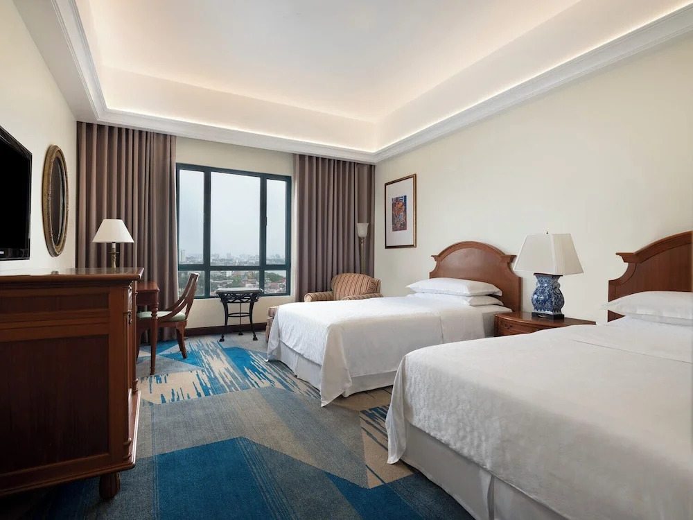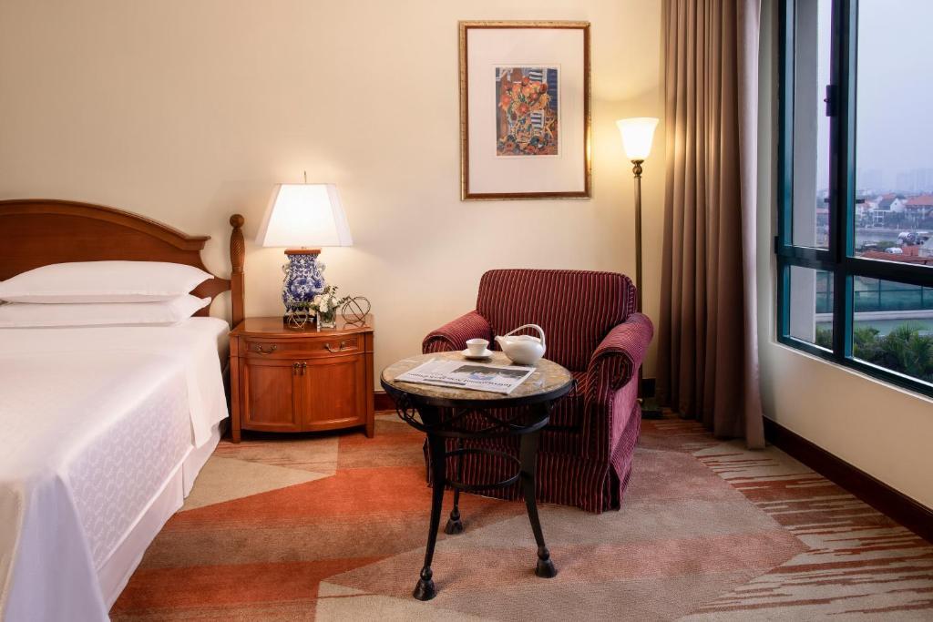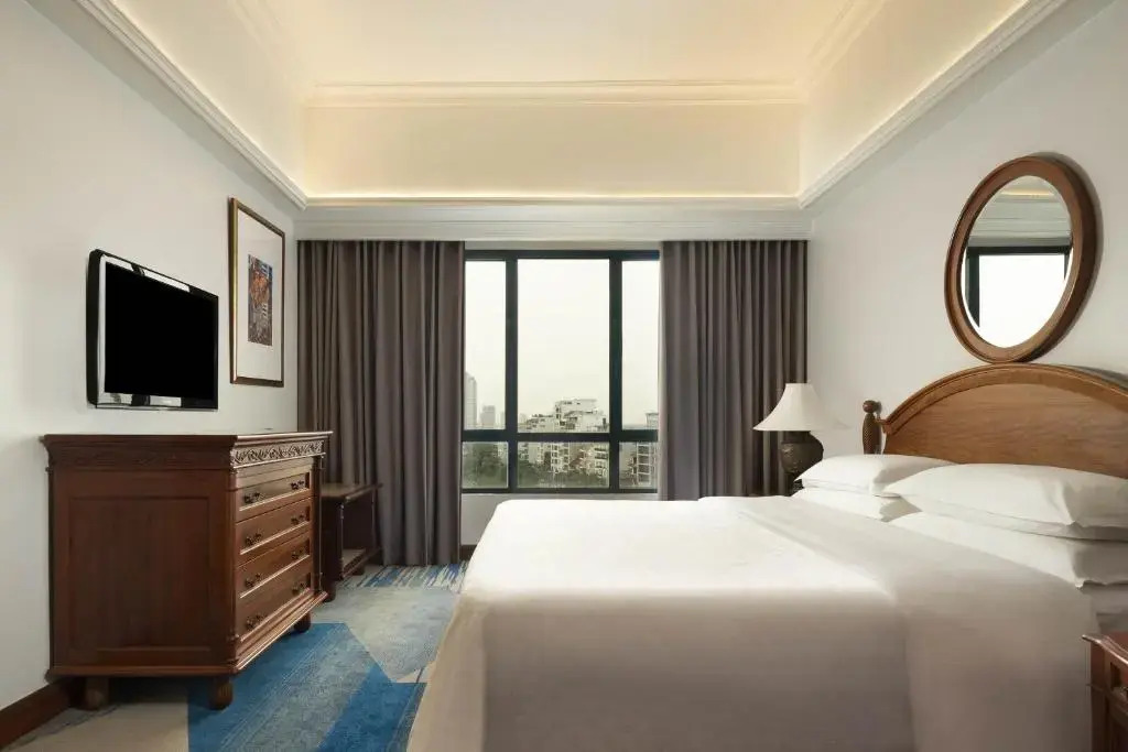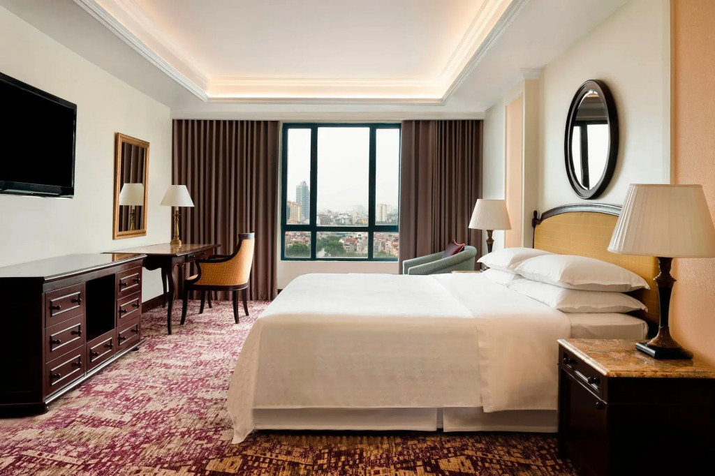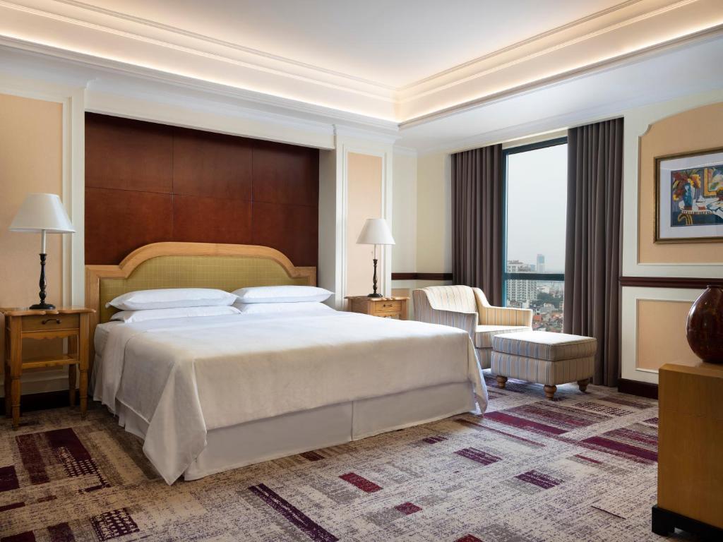 Описание номеров Sheraton Hanoi Hotel 5*:Отель Sheraton Hanoi предлагает своим гостям размещение в 299 элегантно оформленных номерах. В каждом номере есть кондиционер, ЖК-телевизор с кабельным телевидением, а также письменный стол и мини-бар. Кроме того, в распоряжении гостей удобства для приготовления кофе и холодильник. В индивидуальной ванной комнате каждого номера предусмотрены ванна, душ, фен и бесплатные туалетные принадлежности.