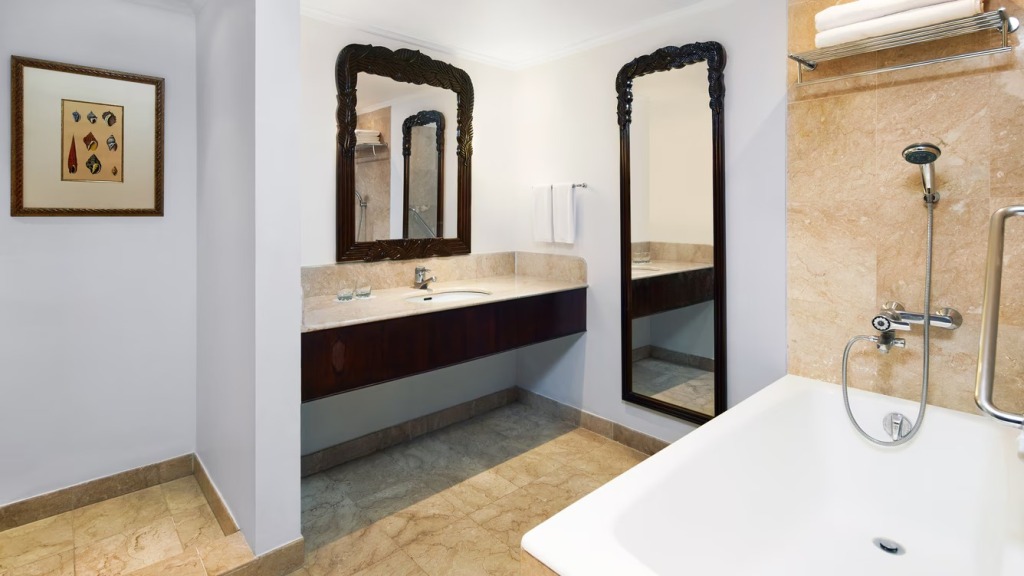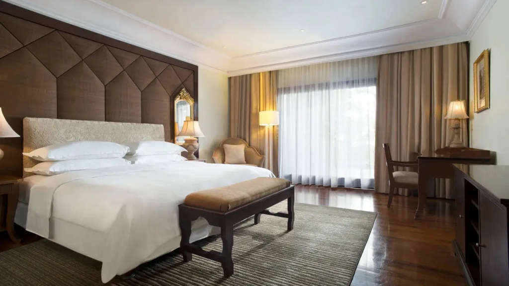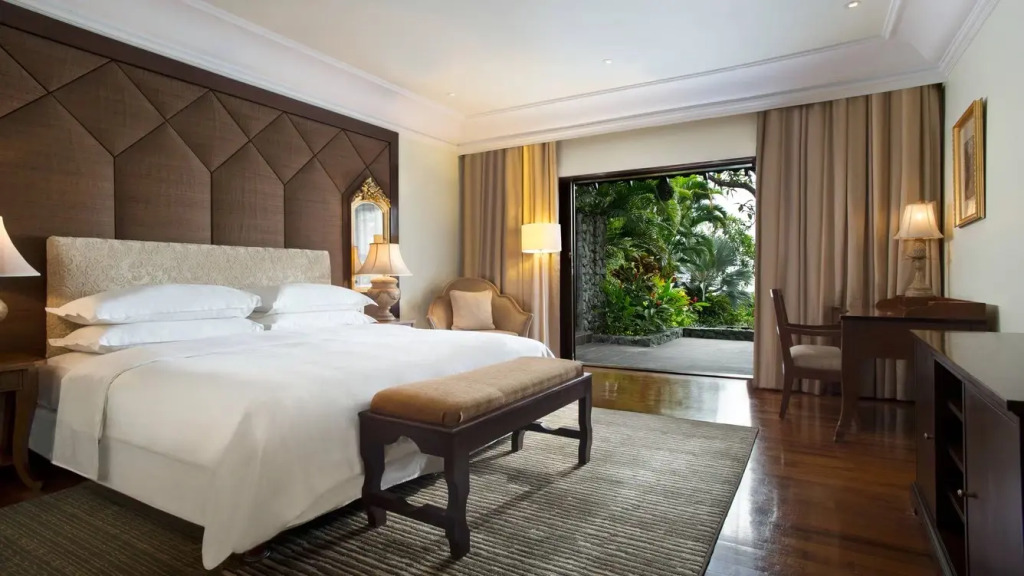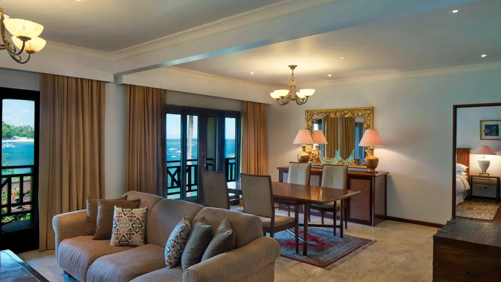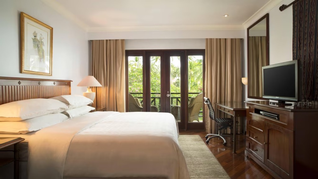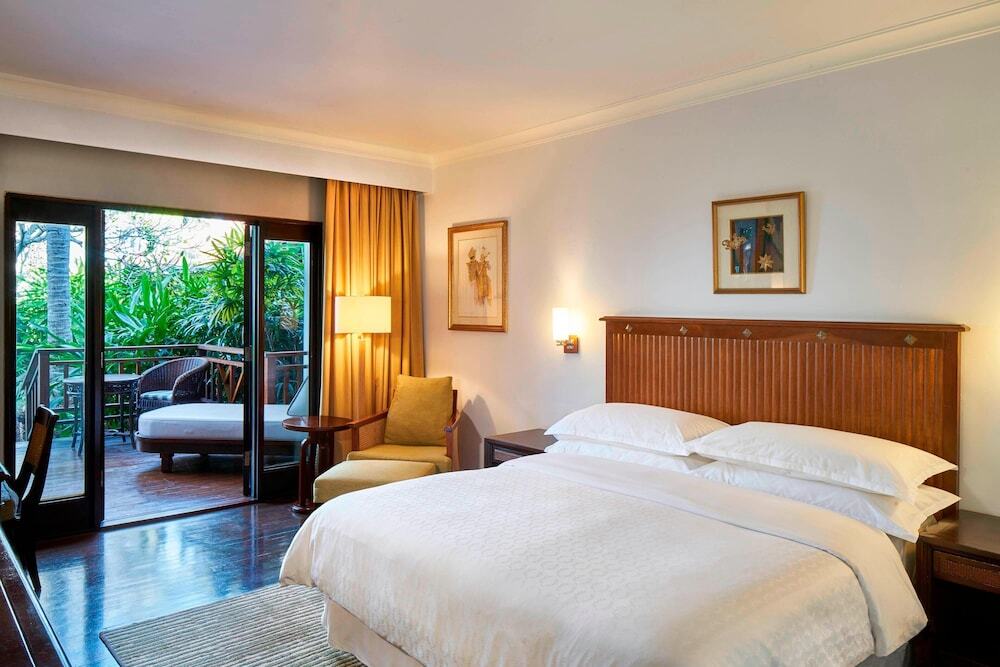 Описание номеров Sheraton Senggigi Beach Resort 5*:Курортный отель Sheraton Senggigi Beach предлагает своим гостям размещение в 154 комфортабельных номерах. В каждом номере есть кондиционер, ЖК-телевизор, DVD-плеер, а также сейф, мини-бар, чайник и кофеварка. В индивидуальных ваннах комнатах предусмотрены ванна, душ, бесплатные туалетные принадлежности и фен.