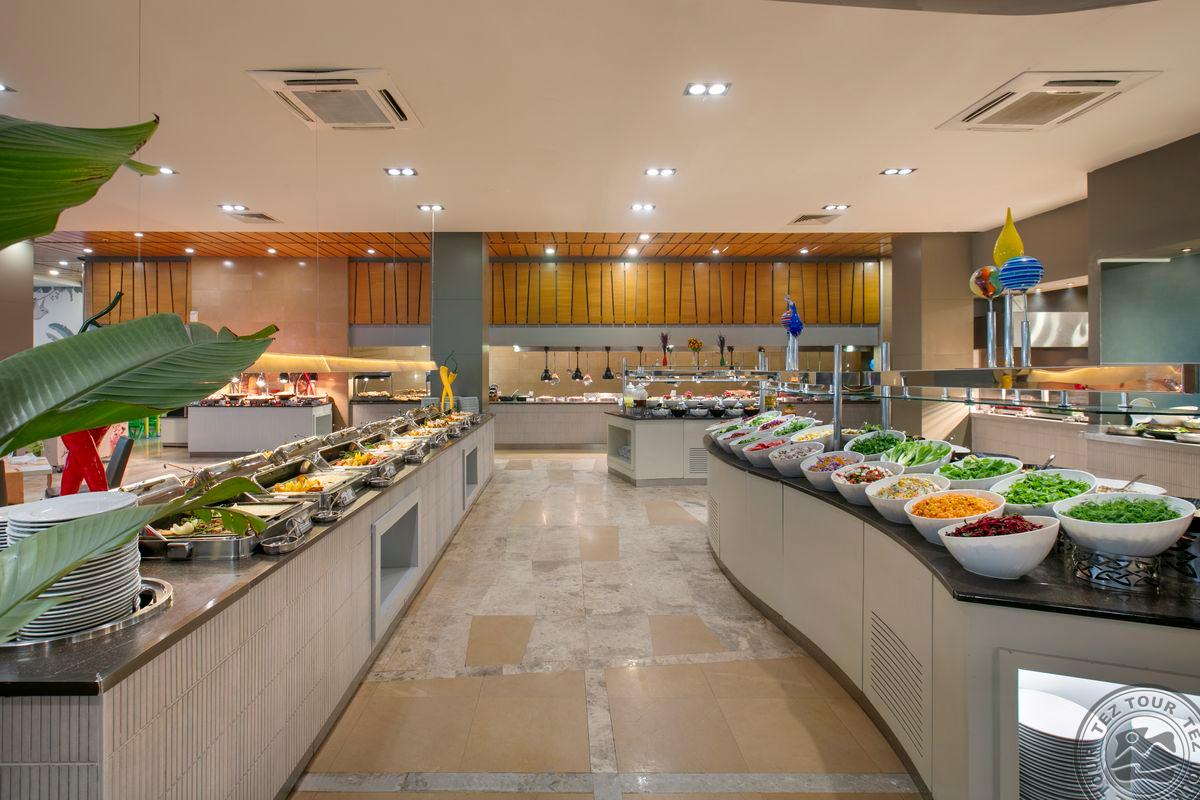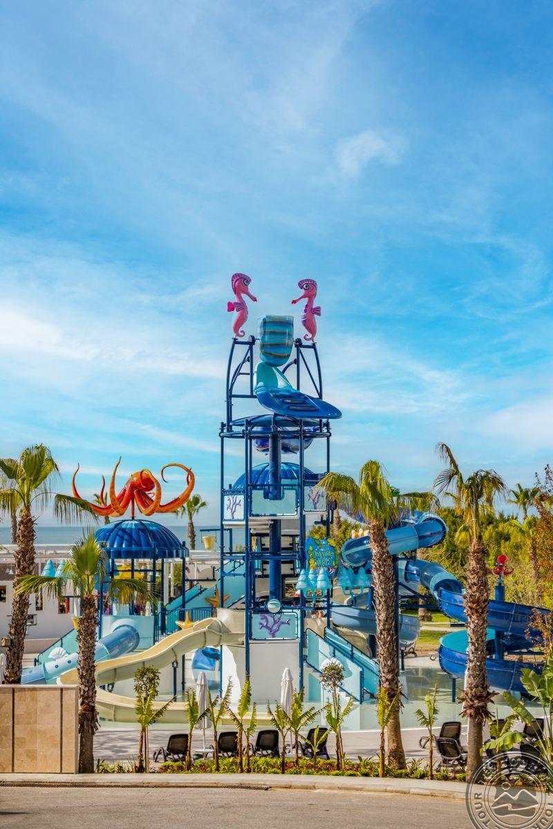 Территория:> рестораны: 1 (основной, есть диетическое и вегетарианское питание) бары: 6 крытые бассейны: 1 бассейны: 3 (открытые, один из них с подогревом в зависимости от погодных условий) спа-центр конференц-залы: 2 у бассейна полотенца: бесплатно у бассейна зонтики, шезлонги: бесплатно химчистка (платно) рестораны a la carte: 3 кабинет врача (платно) водные горки: 4 (для взрослых) Wi-Fi бесплатно парковка есть прачечная платно снек-бар (2)