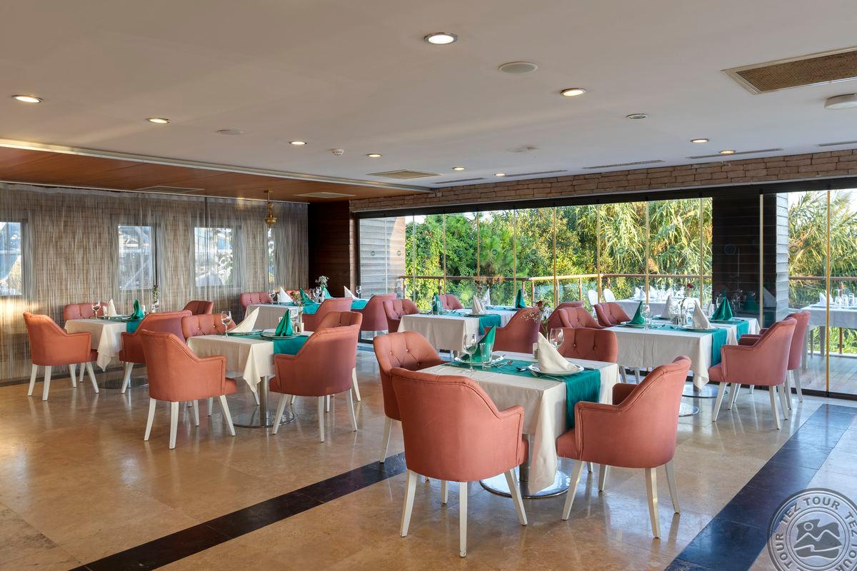 в 43 км от аэропорта, в 50 км от центра г. Анталья, в 13 км от поселка Серик, в 11 км от центра Белека, в 500 м от центра поселка Boğazkent, на берегу моря.