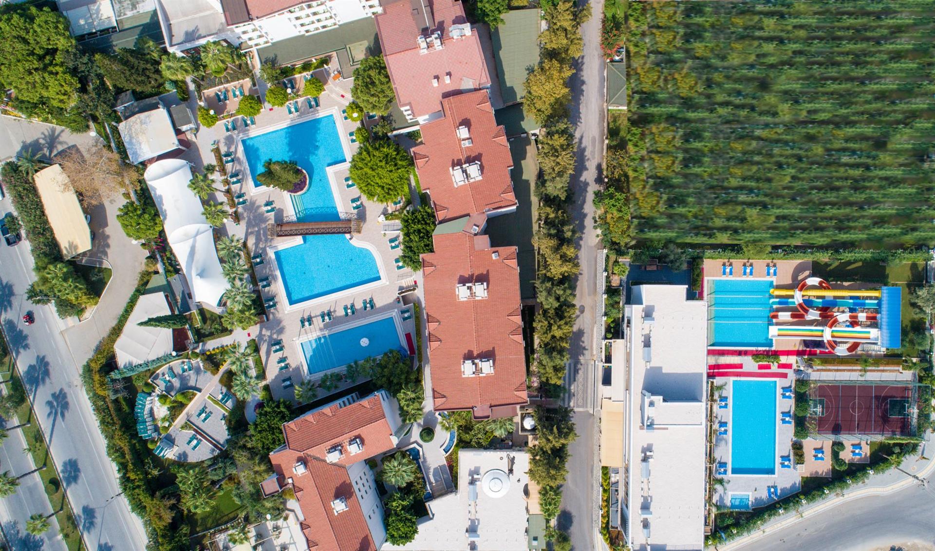 - 4 открытых бассейна (1 из них с подогревом апр. и 20.10-11.11), 410, 102, 136 и 144 кв.м
