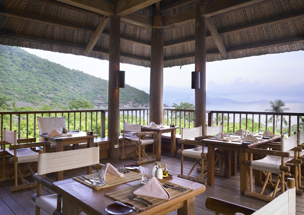 Dining by the Bay По вечерам этот ресторан предлагает европейские, азиатские блюда и их комбинации. По утрам завтрак, шведский стол, также порадует большим разнообразием блюд из разных стран и множеством тропических фруктов. Ресторан находится на двух этажах, с видом на бухту и открытый свежему бризу. Нижний этаж с бамбуковым потолком мил и уютен, а второй этаж с соломенной крышей создает впечатление открытости природе. Есть детское меню.Dining by the Pool Из ресторана рядом с главным бассейном открывается замечательный вид на бухту и океан. В нем 44 места и открыт ресторан на обед с 12:00 до 16.00. Подаются европейские и вьетнамские блюда.Dining by the Rocks Этот ресторан предлагает атмосферу уединения и романтики. Он находится высоко над бухтой и открыт в спокойные вечера для изысканного ужина из шести блюд, к которым можно подобрать соответствующее вино из коллекции шеф-повара. Блюда готовятся в открытой кухне с 19.30 до 10.30. Примернодвенадцать человек могут разместиться на деревянной террасе с захватывающим видом на бухту Нин Ван, Южно-Китайское море и возвышающиеся горы Хон Хео.Dinner in the Wine Cave