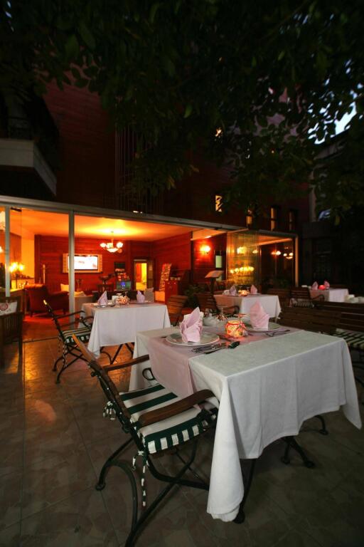 В отеле:Утром на открытой террасе отеля Rose Garden Suites накрывается бесплатный завтрак с бодрящим кофе, выпечкой и соками. В ресторане отеля вам предложат попробовать блюда традиционной турецкой кухни.; Отель располагает уникальным садом, где выращивают сорта роз из всех регионов Турции. Организовать досуг вне отеля вам помогут сотрудники экскурсионного бюро.; К услугам гостей бесплатный Wi-Fi, работающий на всей территории отеля. Для деловых гостей в отеле предоставляют услуги секретаря, служба технической поддержки, а также осуществляется прокат лимузинов.
