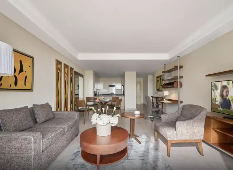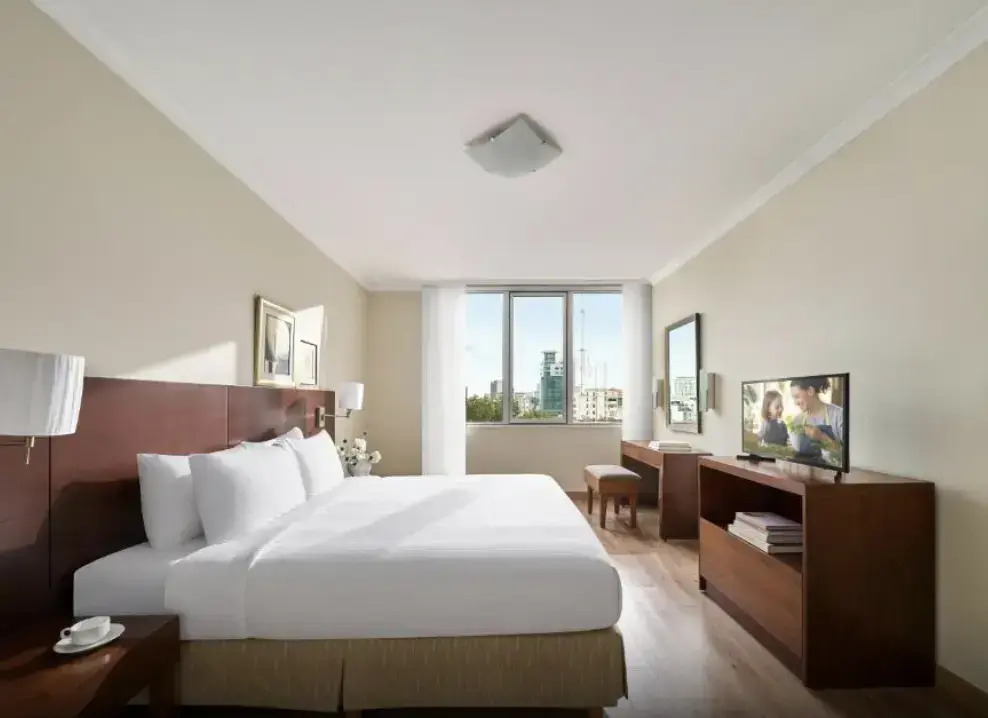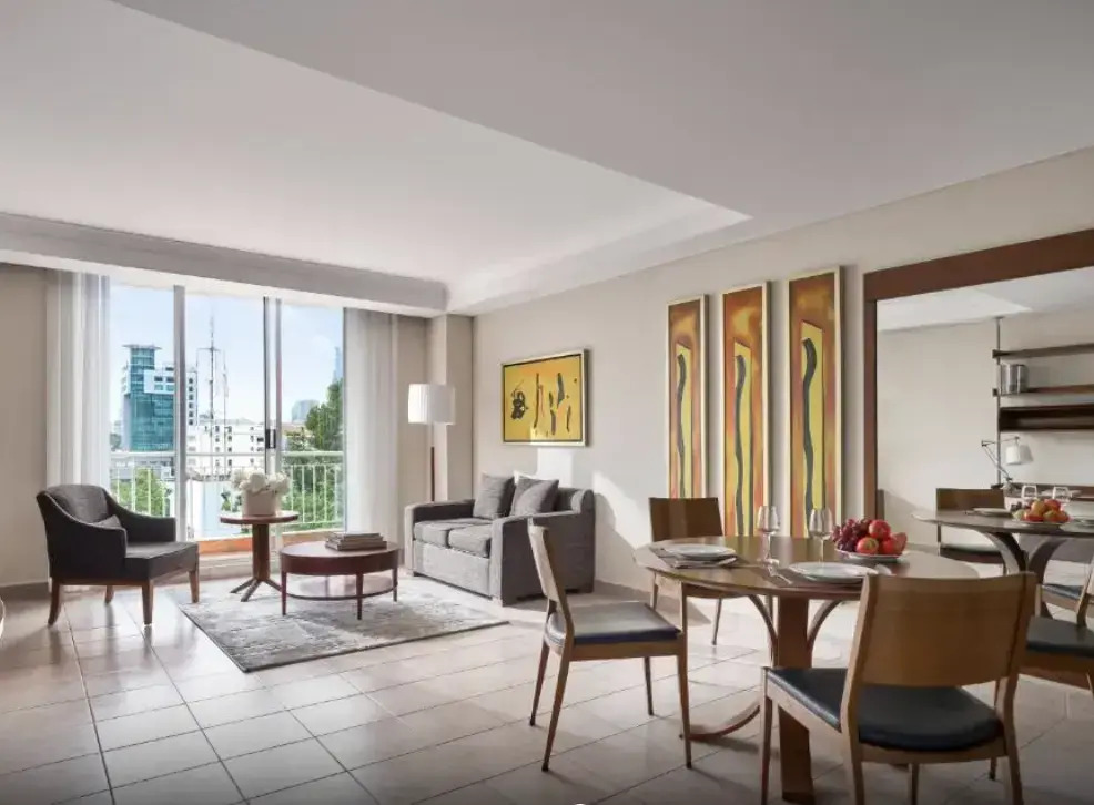 В отеле:Ресторан отеля предлагает своим гостям завтрак, обед и ужин. На кухне в своем номере вы всегда можете сварить чашечку свежего кофе и приготовить любимые блюда.; В отеле работает салон красоты. К услугам гостей открытый бассейн и паровая баня. Если вы предпочитаете активный отдых, посетите фитнес-центр. Также можно с удовольствием провести время за игрой в бильярд или отправиться на пикник.; На стойке регистрации имеется сейф. По запросу предоставляется трансфер до аэропорта. Для тех, кто путешествует на собственном автомобиле, предусмотрена бесплатная парковка. На территории всего отеля доступен бесплатный Wi-Fi. Также к вашим услугам прачечная и химчистка.